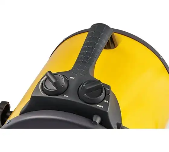 Помимо стандартного размещения на полу, тепловую пушку Prorab 2 можно подвесить на стену или колонну, выбрав необходимый угол обдува с помощью барашковых винтов, которые надежно фиксируют пушку. Это поможет сэкономить рабочее пространство и повысить безопасность. При установке прибора на стене уменьшается разница температуры по высоте, тем самым сокращается расход на электроэнергию.