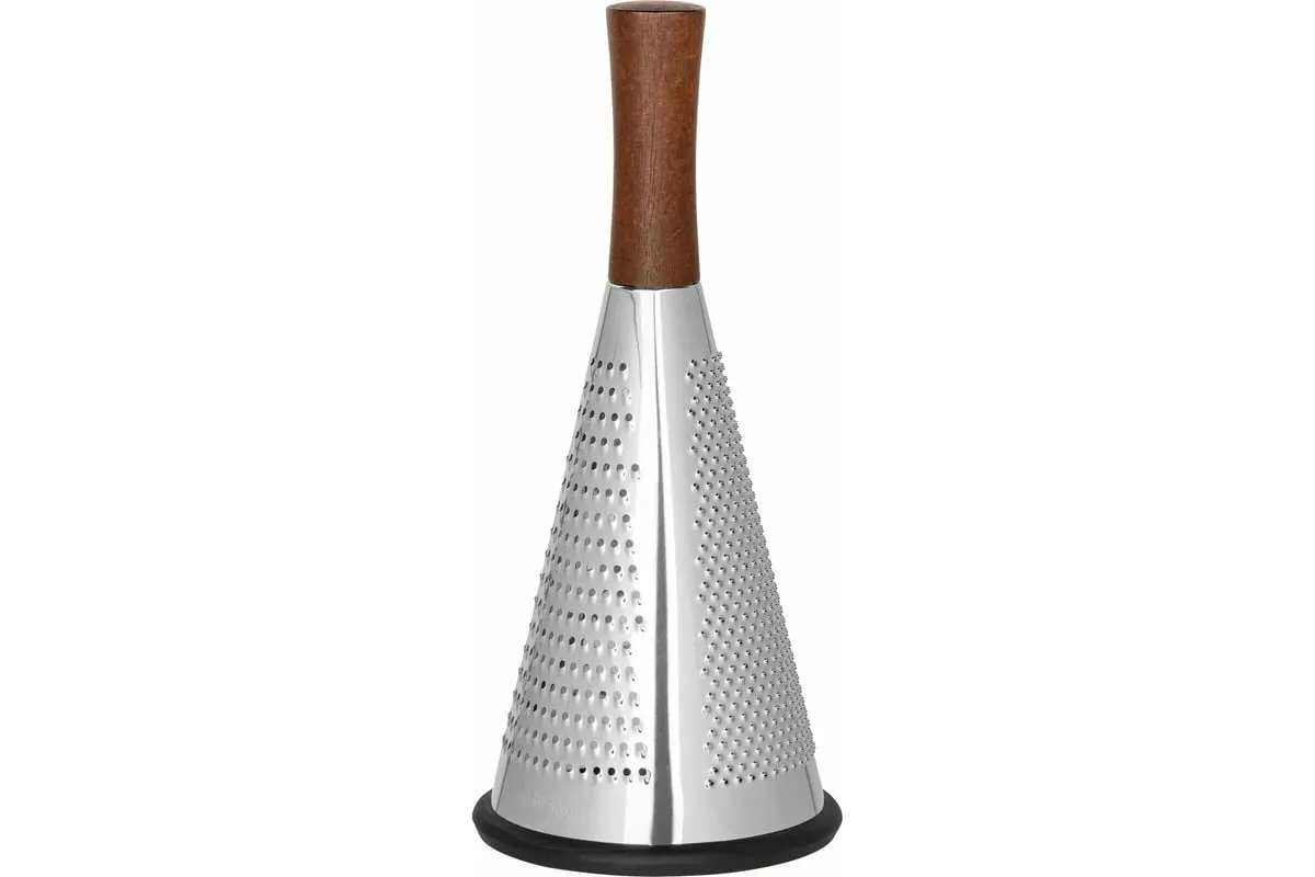 Конусная тёрка для овощей, фруктов и сыра - это настоящее открытие для любителей кулинарии. Этот удобный и практичный инструмент станет незаменимым помощником на кухне. Терка имеет деревянную ручку и круглую форму, что делает ее удобной в использовании. Она легко помещается в руке и не скользит во время работы. Терка оснащена мелкой, крупной и средней теркой, что позволяет быстро и легко нарезать овощи, фрукты и сыр. Не рекомендуется мыть изделие в посудомоечной машине.