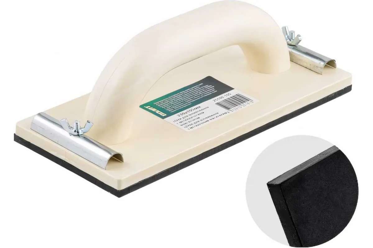 Терка для шлифования ВОЛАТ с фиксатором 230x105 мм 25100-105 используется для выполнения штукатурных работ. Основная область применения - окончательная доводка и затирка оштукатуренной поверхности. Терка выполнена из качественного и прочного полиуретана. Удобная рукоятка служит для комфортной эксплуатации.