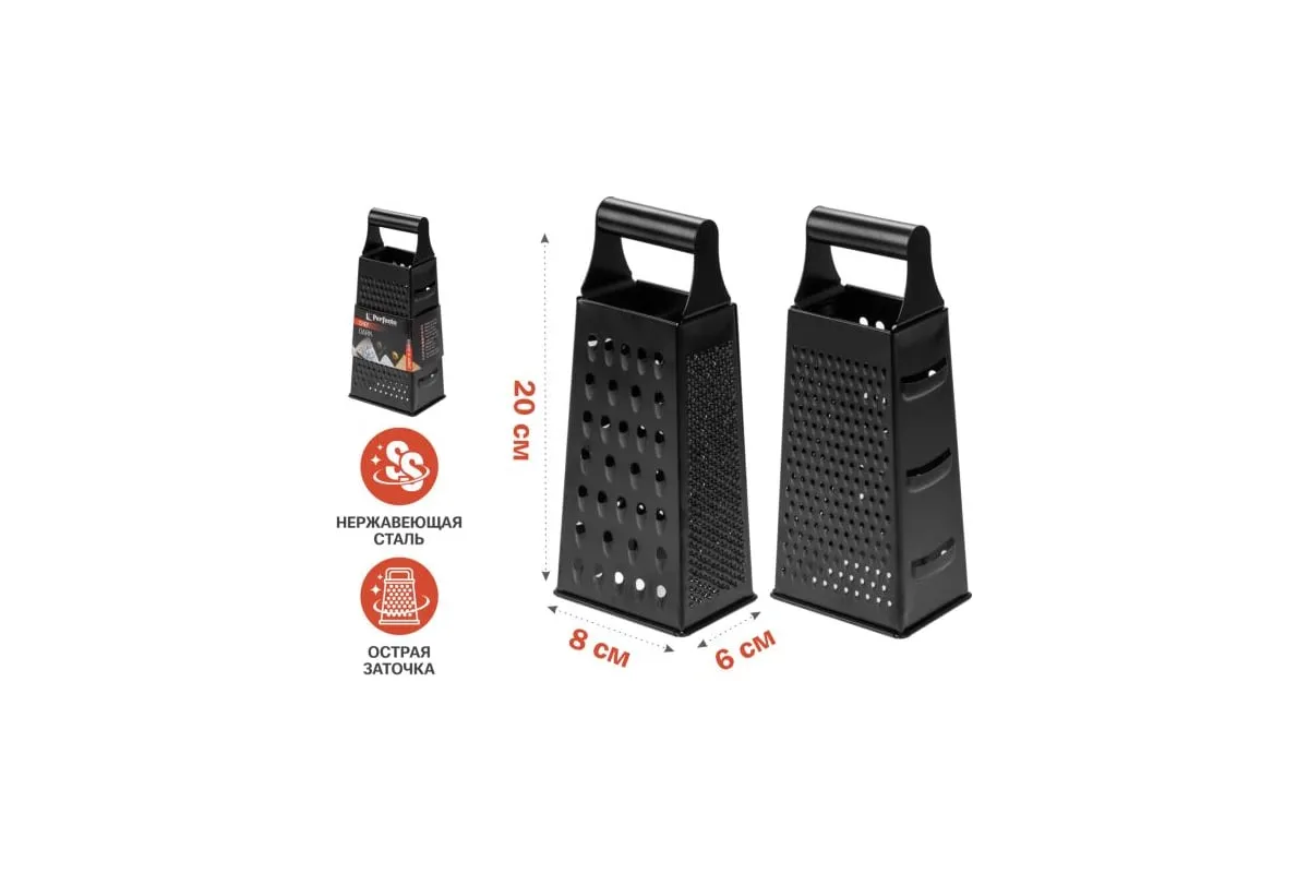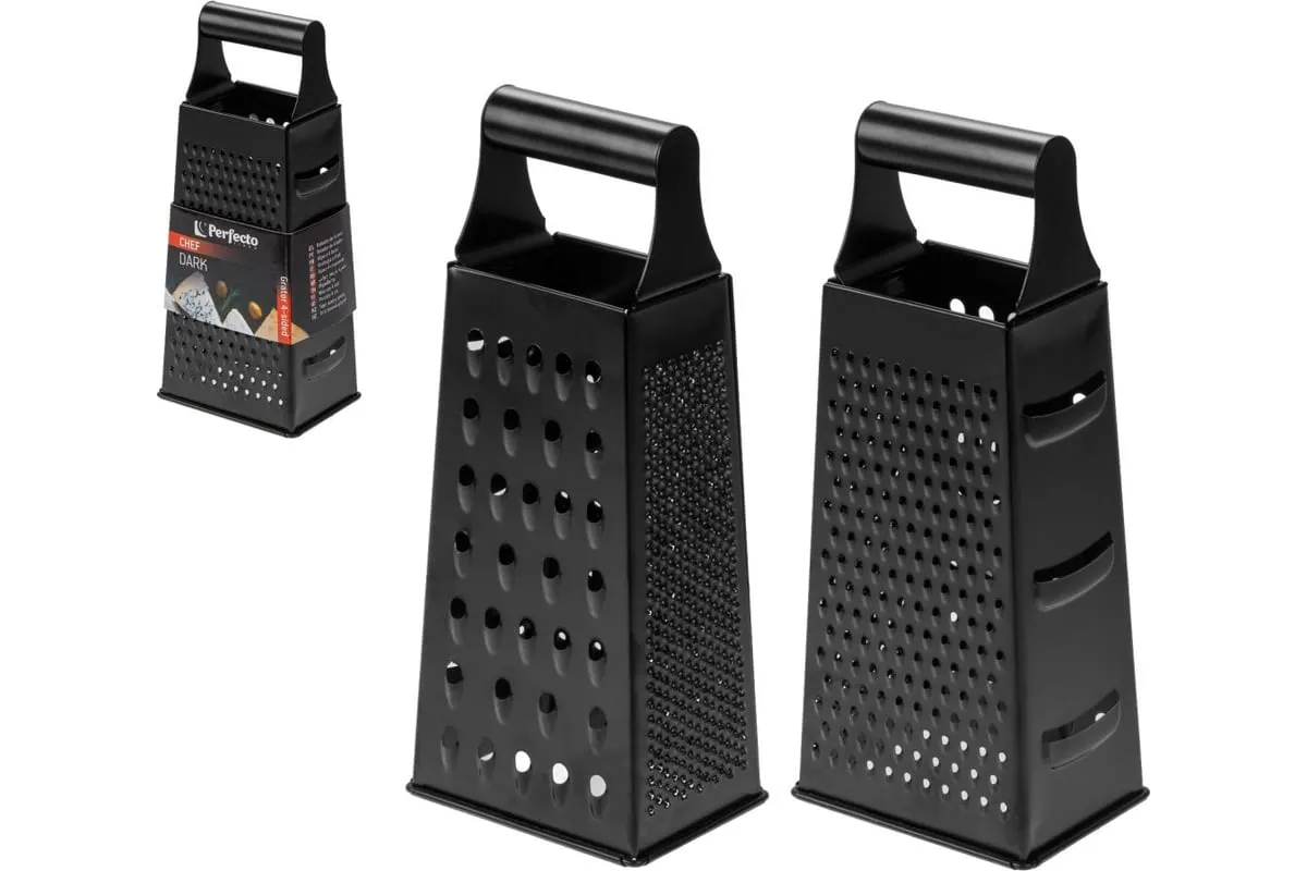 Ручная терка Perfecto Linea из нержавеющей стали, это отличный базовый инструмент, который должен быть на каждой кухне. Поверхность терки имеет 4 рабочих поверхности (4 грани): мелкая шинковка для измельчения шоколада, цедры лимона, чеснока; средняя и крупная шинковка для измельчения моркови, картофеля, кабачков, тыквы и других овощей, а также фруктов и сыра, и грань для слайсов. Чтобы сохранить терку для овощей в отличном состоянии, рекомендуется мыть её вручную или в посудомоечной машине.