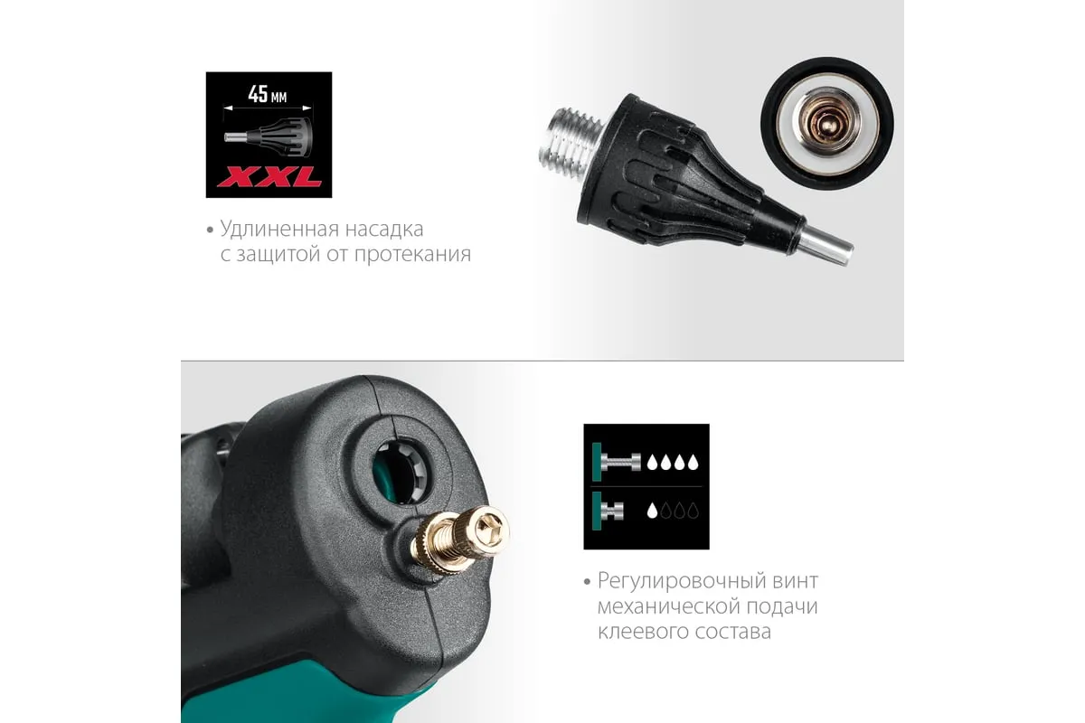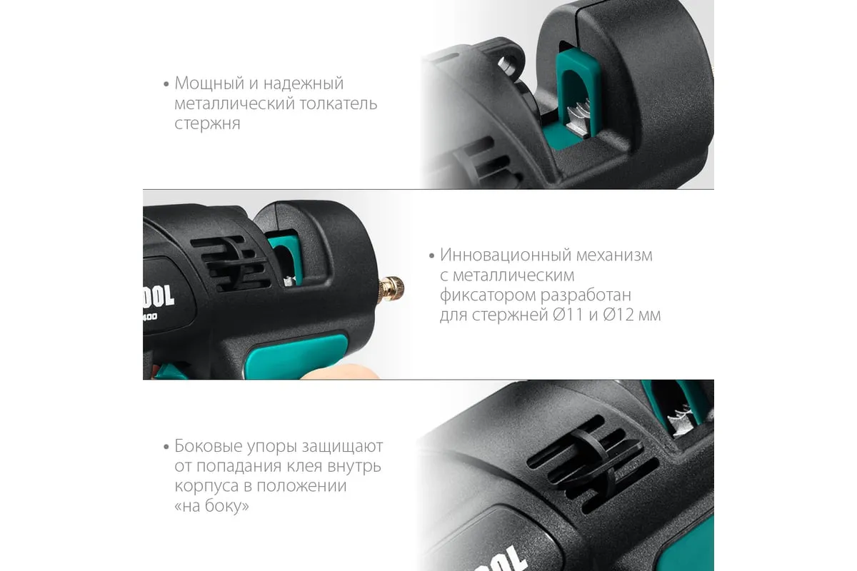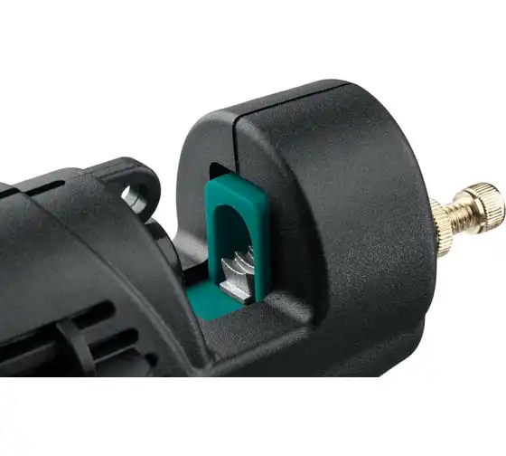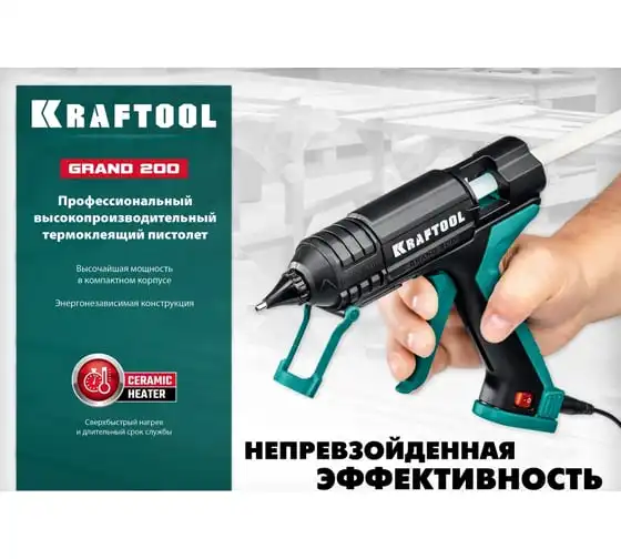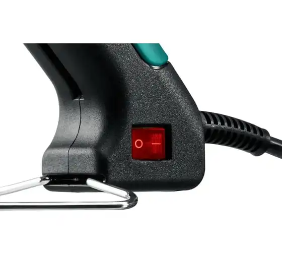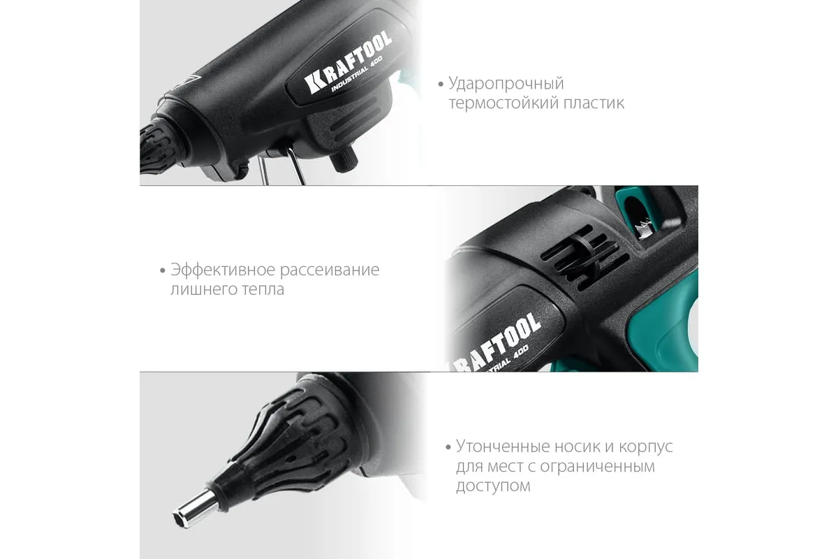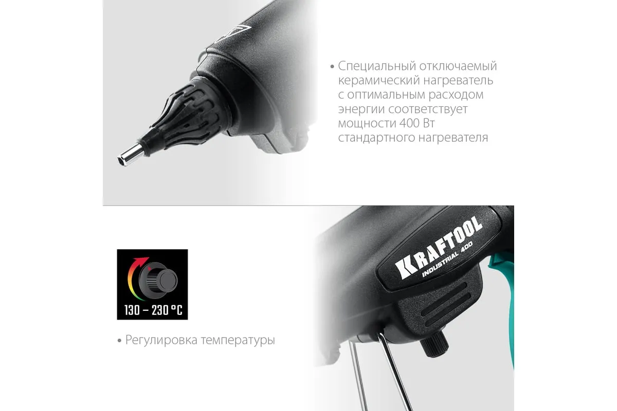 Термоклеящий пистолет KRAFTOOL Pro 06843-300-12 имеет длинный широкий курок, который удобно нажимать при любом хвате рукоятки. Специальная скоба позволяет фиксировать инструмент в нерабочем положении и обеспечивает его готовность к работе. Модель работает со стержнями диаметром 11-12 мм.