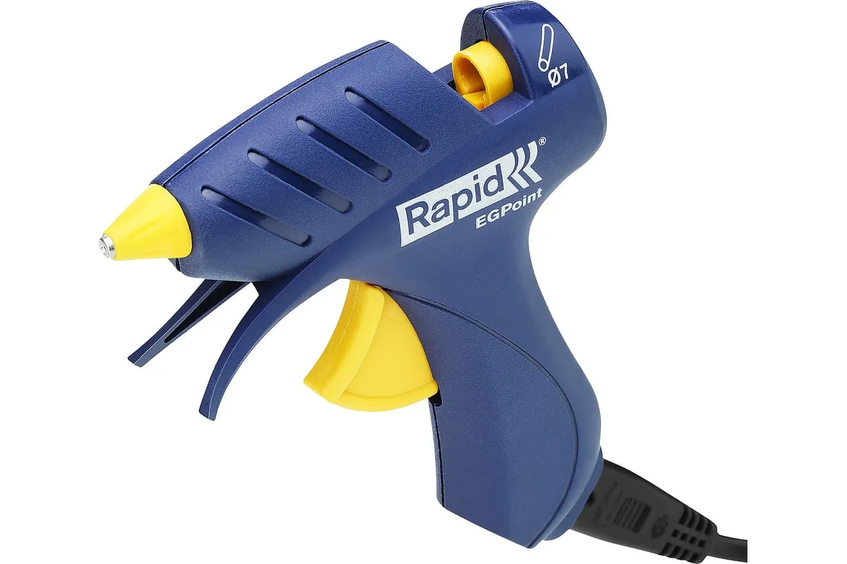 Термоклеящий пистолет RAPID EG Point 5000432 служит для скрепления материалов при помощи клея. Инструмент нагревается в течение 5 минут, чтоэкономит время работы. Подставкапозволяет положить изделиена поверхность в перерывах. Широкий курокспособствует комфортной деятельности.