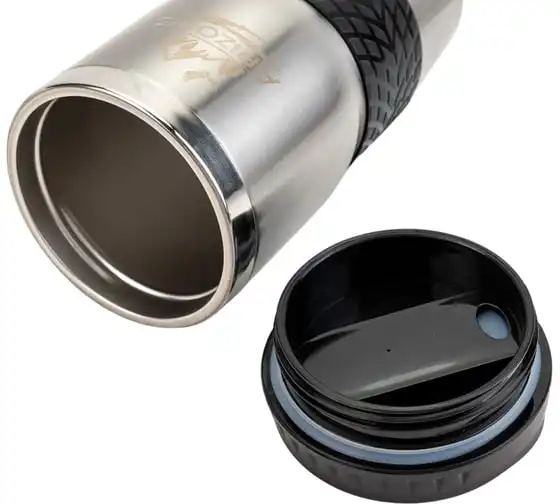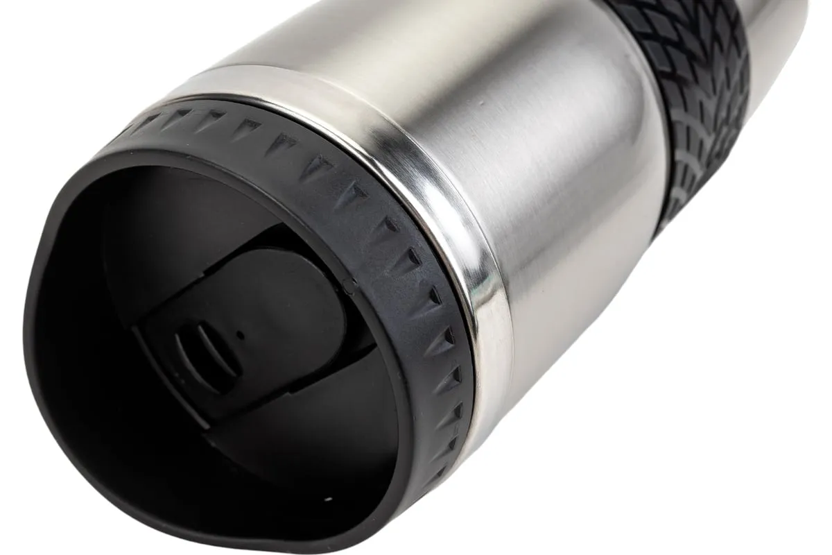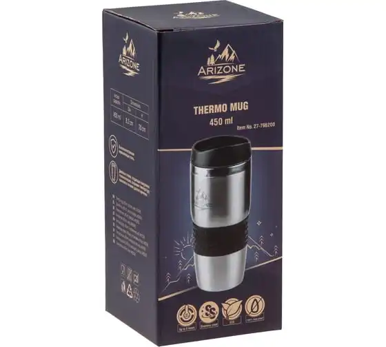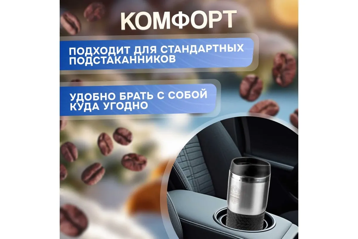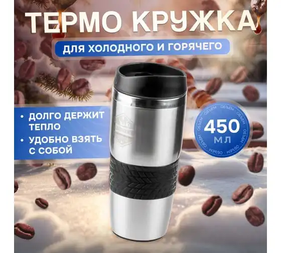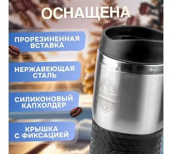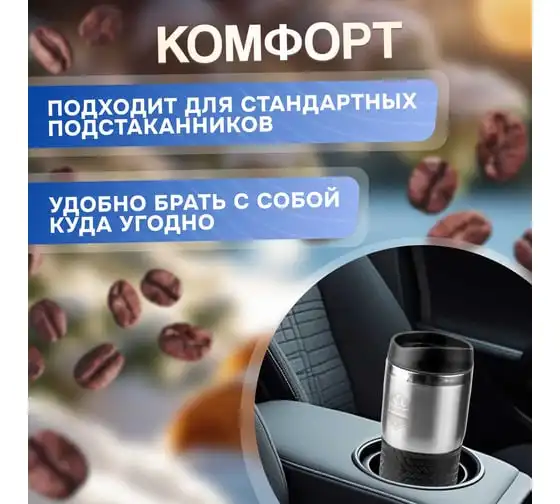 Двойные стенки, создающие вакуумную теплоизоляцию, сохраняют температуру напитков в течение долгого времени Материал корпуса: нержавеющая сталь и пищевой пластик Материал колбы: нержавеющая сталь