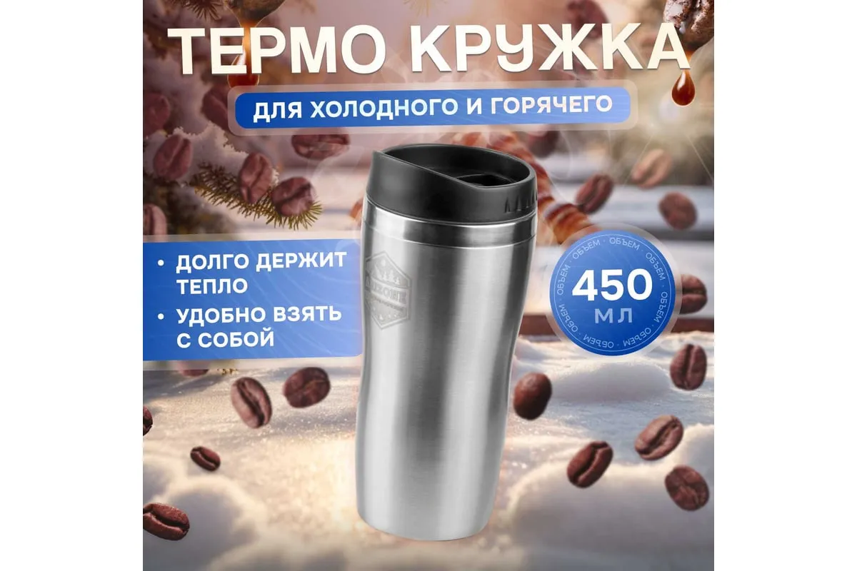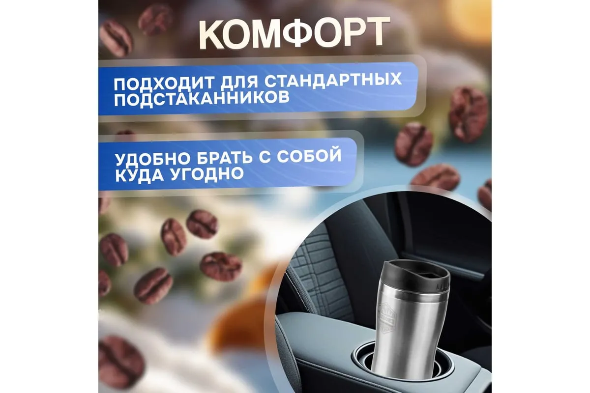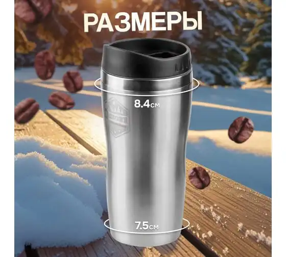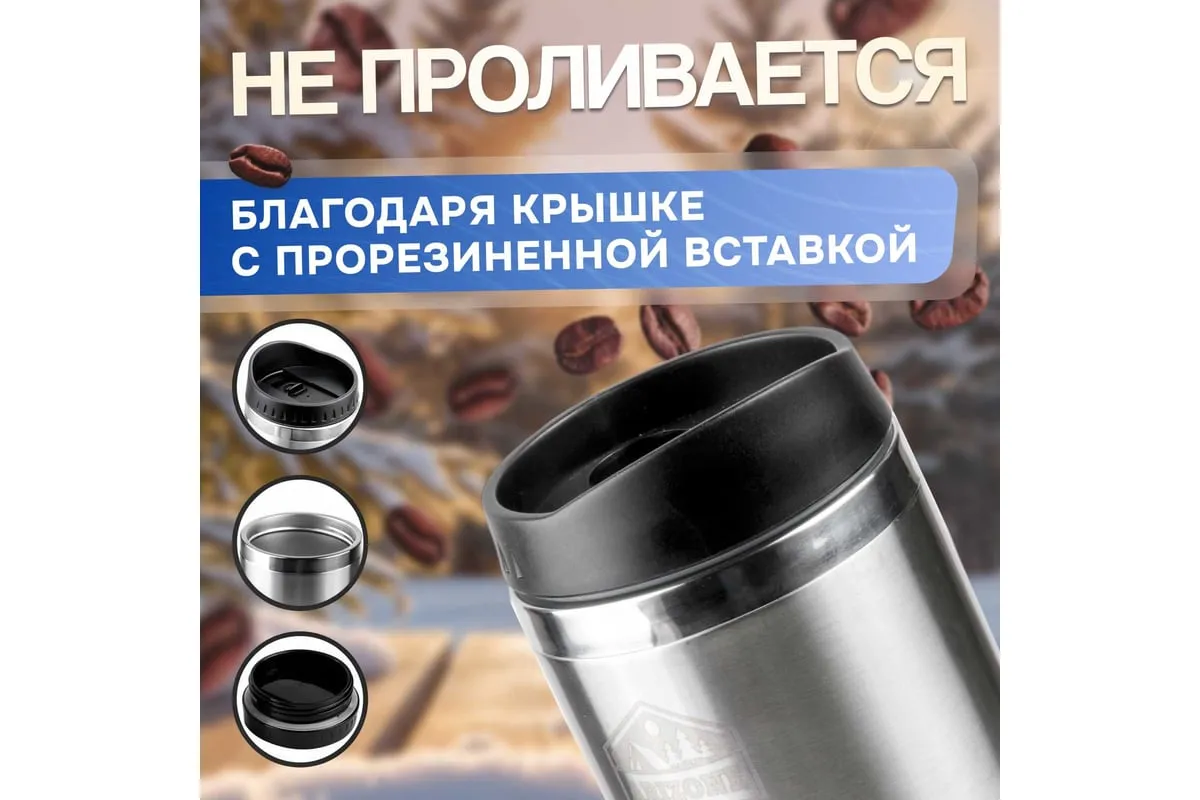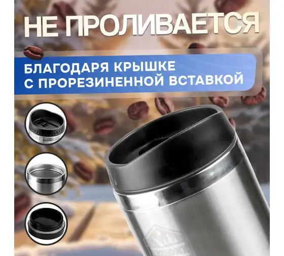 Двойные стенки, создающие вакуумную теплоизоляцию, сохраняют температуру напитков в течение долгого времени Материал корпуса: нержавеющая сталь и пищевой пластик Материал колбы: нержавеющая сталь