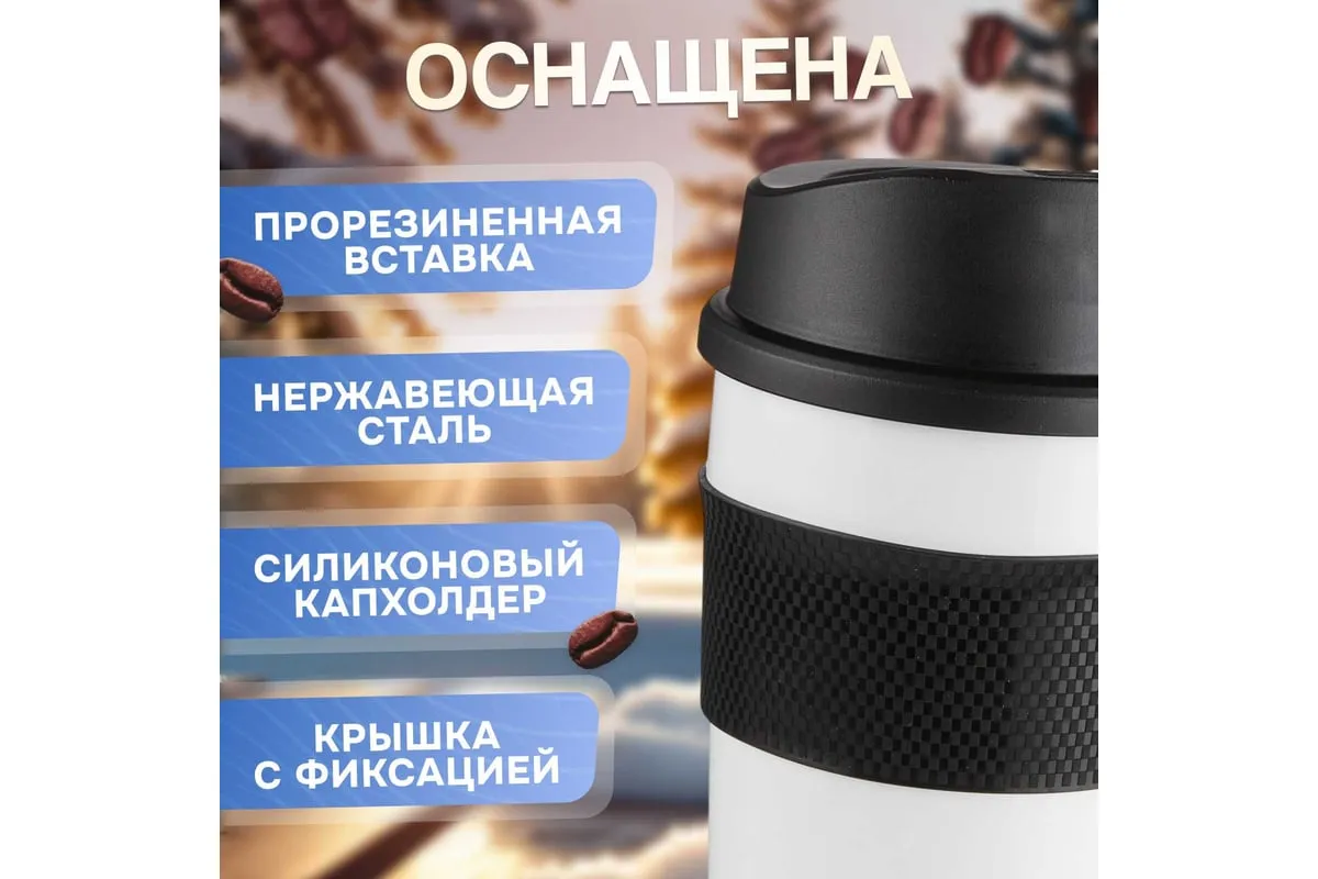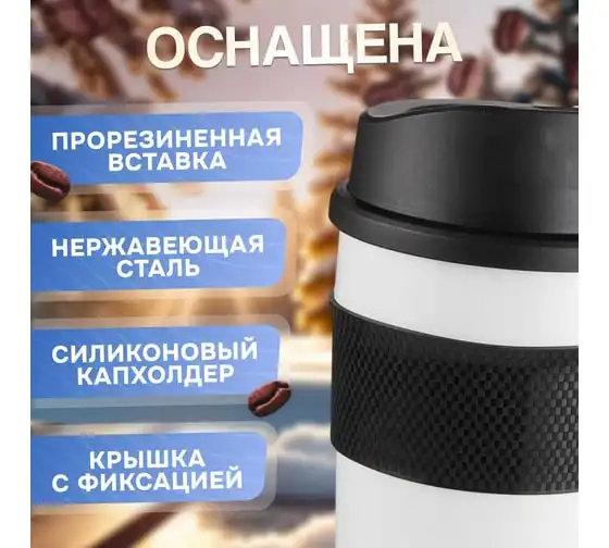 Ультрамодный дизайн Высококачественная нержавеющая сталь Двойные стенки, создающие вакуумную теплоизоляцию, сохраняют температуру напитков в течение долгого времени Часть корпуса имеет силиконовый обод для защиты рук от высоких температур Механизм открытия/закрытия отверстия для питья Клик-Клак