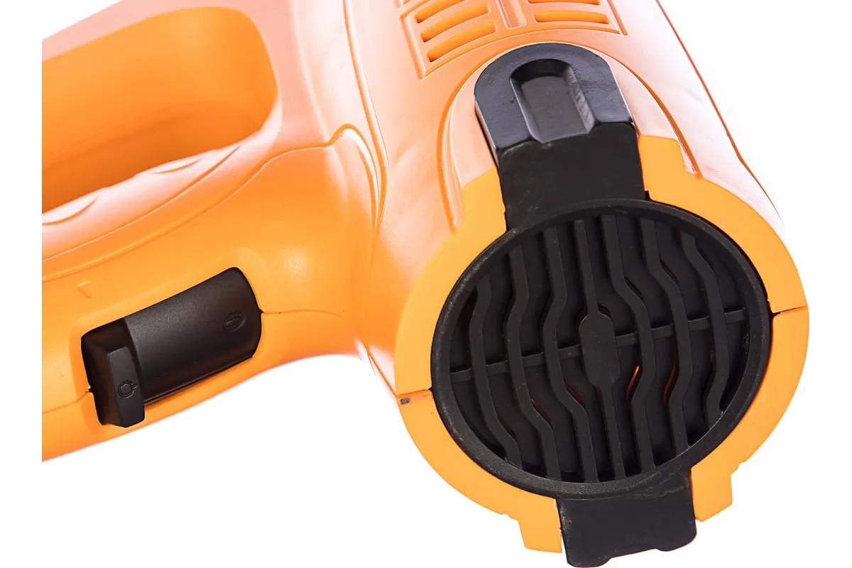 В модели ВИХРЬ ТП-2000 реализованы 2 режима работы с различной величиной воздушного потока, для установки которых предусмотрен специальный переключатель. Первый режим – поток 300 л/мин, температура 400°С, второй – 500 л/мин, 550°С. Промышленный фен оснащён также термореле, которое обеспечивает надёжную защиту от перегревов. Эргономичная рукоять и сама форма инструмента позволяют работать им просто и эффективно. В комплект входят непосредственно термопистолет, пластиковый кейс, четыре насадки и треугольный скребок. Напряжение сети питания – 220 В. Вес инструмента – 750 г.