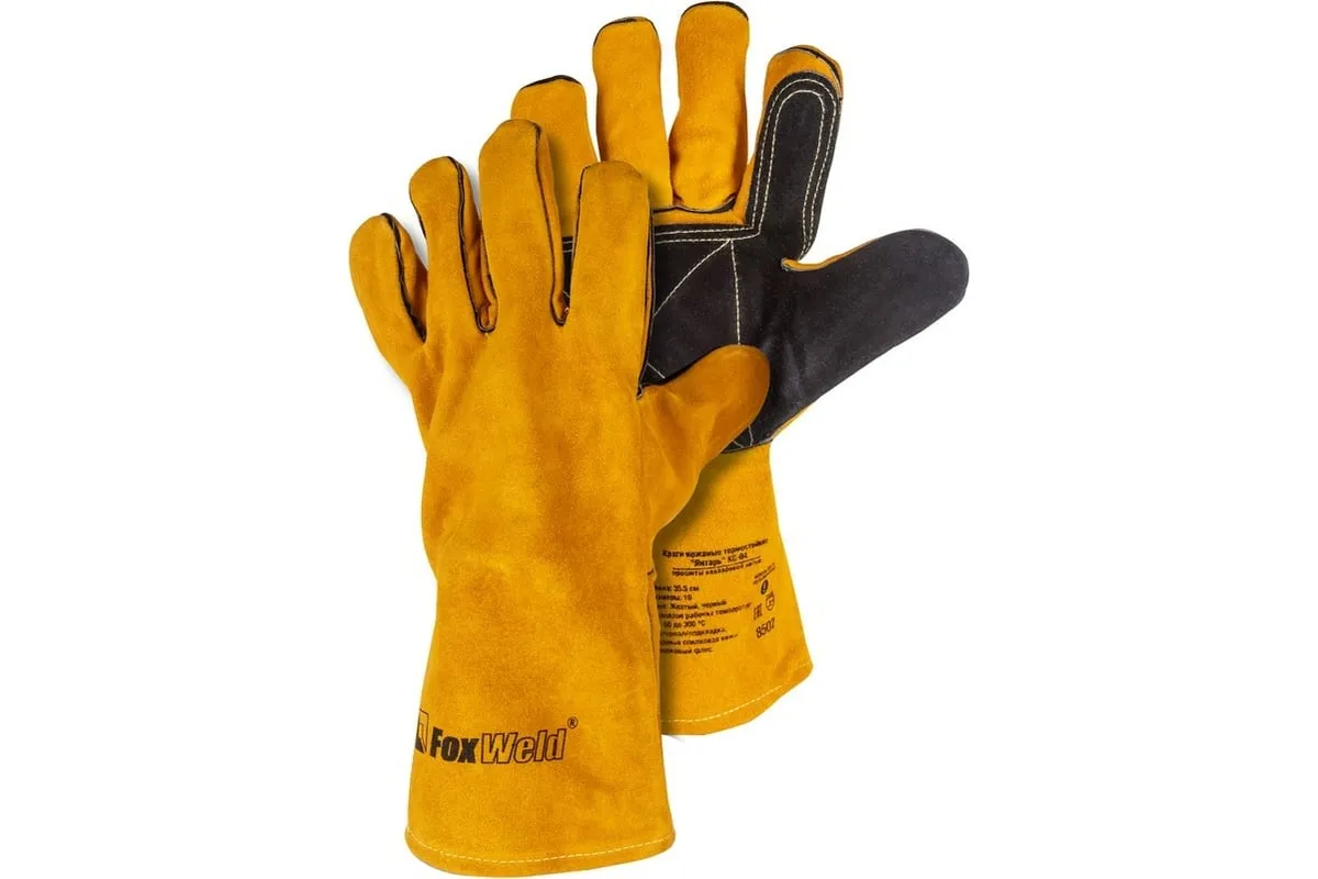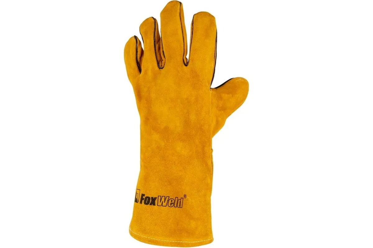 Термостойкие кожаные краги Foxweld Янтарь КС-04 8502 надежно защищают руки от искр и брызг расплавленного металла при проведении сварочных работ.