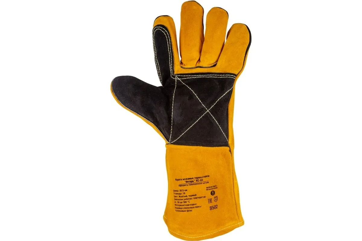Изготовлены из натуральной кожи. Спилковые краги прошиты огнеупорными и прочными кевларовыми нитками.