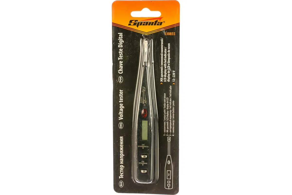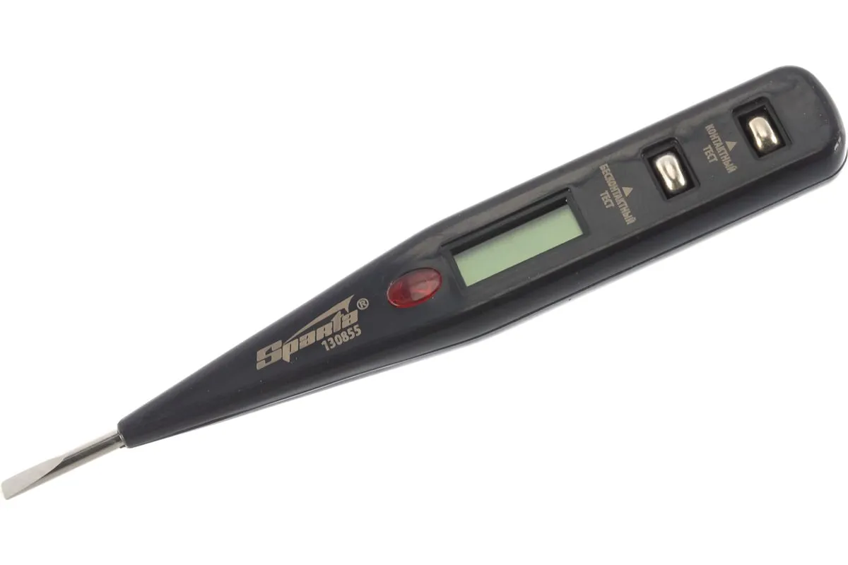 Тестер напряжения SPARTA 130855 - это отвертка-индикатор с профилем "прямой шлиц". Такой тестер предназначен для определения наличия напряжения в электрических сетях, проверки состояния и полярности аккумуляторов, проверки провода на наличие разрыва, обнаружения микроволнового и электромагнитного излучений. Батарейки в комплект поставки не входят.