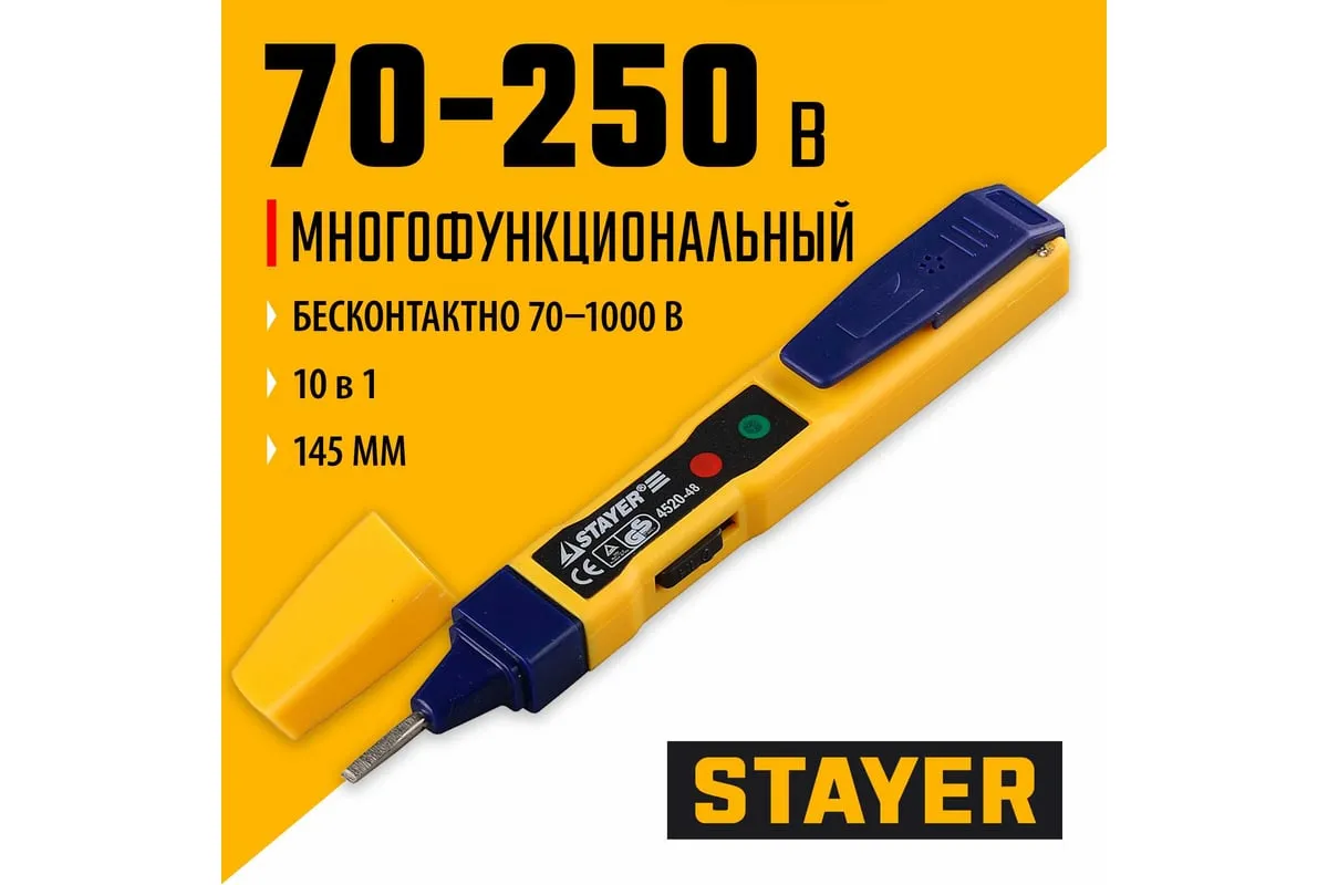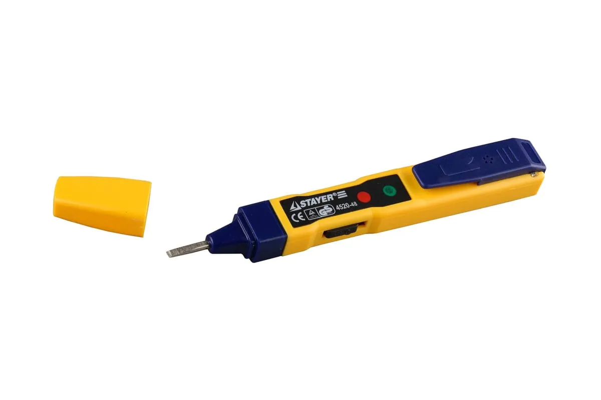 Тестер напряжения STAYER MS-48M 4520-48 служит для проверки работоспособности электрических приборов, ламп накаливания, электронных компонентов и т.д. Определяет наличие напряжения как контактным, так и бесконтактным способом. Тестер имеет3 рабочих режима: "0" (контактное измерение), "L" (низкая чувствительность, бесконтактное измерение), "H" (высокая чувствительность, бесконтактное измерение). Прибор питается от двух батареек, которые обеспечиваютдо 5 часов непрерывной работы.