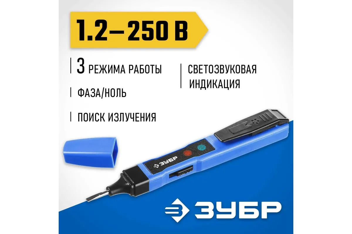Тестер напряжения ЗУБР многофункциональный, 3 режима работы, 1,2-250В 45230 предназначен для определения наличия напряжения в проводниках. Обладает повышенным ресурсом, обеспечивает высокое качество выполнения электромонтажных работ. Применение высококачественных материалов обеспечивает длительный срок службы. Тестер напряжения незаменим при проведении ремонтных и электромонтажных работ. С его помощью можно решать сразу несколько задач: найти скрытую в стене проводку, разрыв цепи или утечку тока, а также использовать в качестве обычной отвертки.