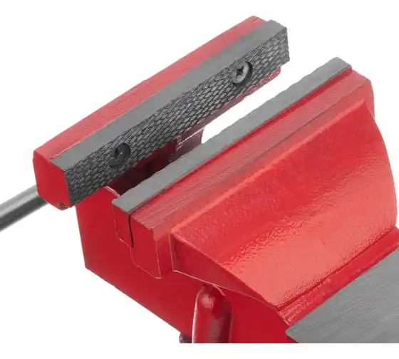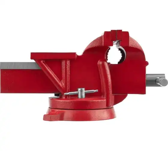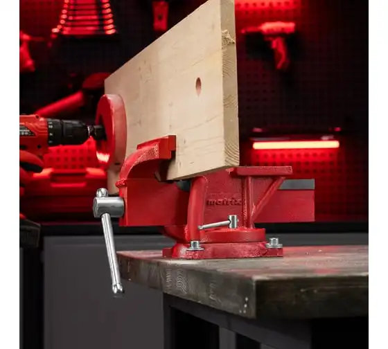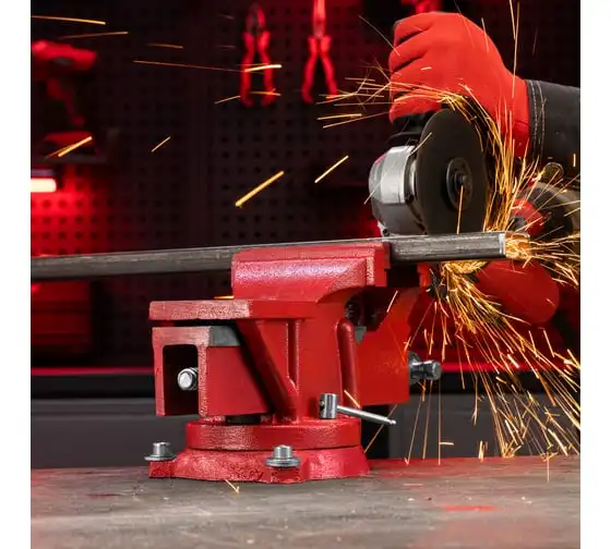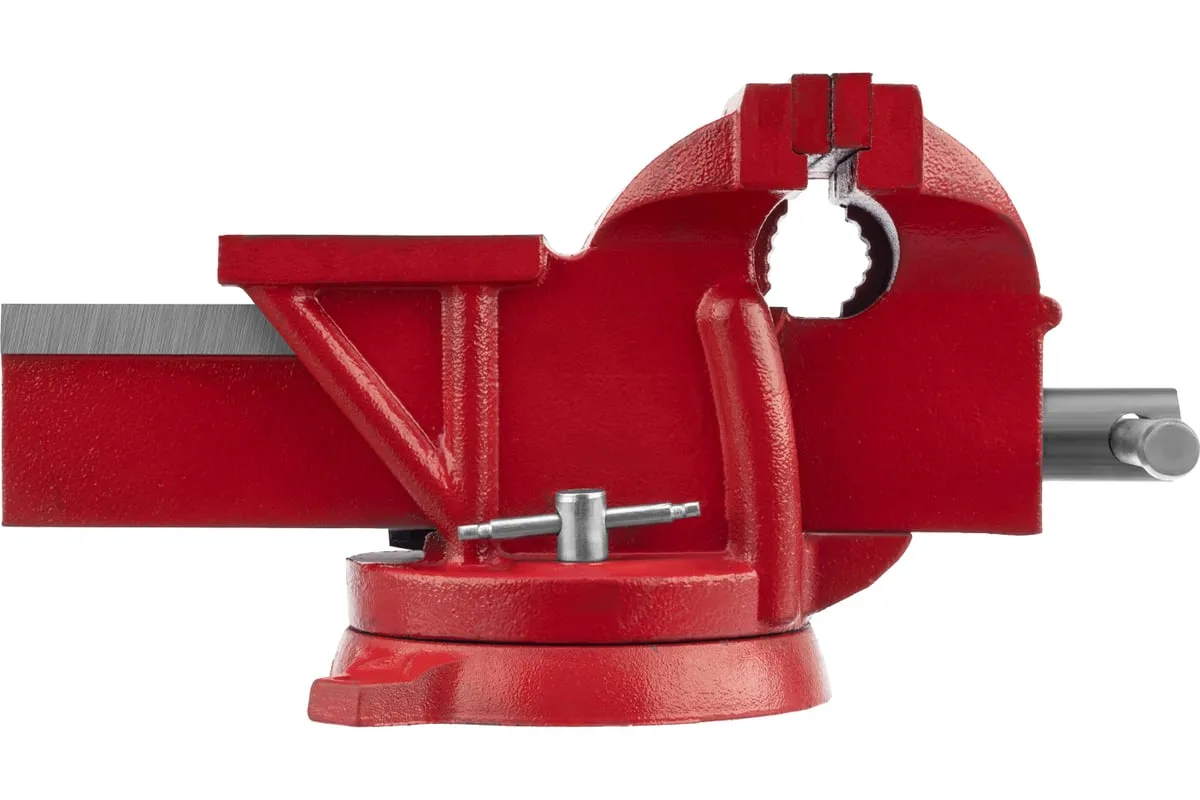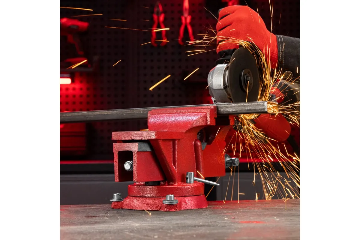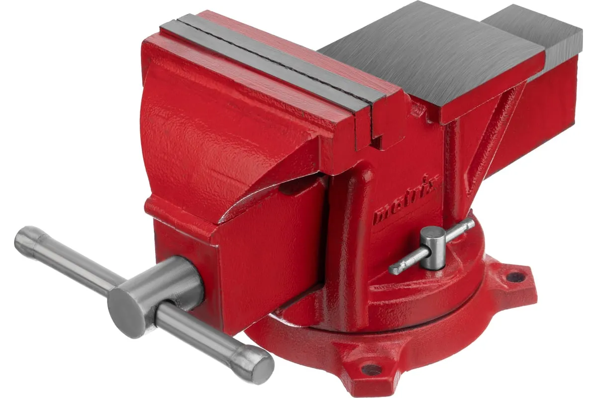 Поворотные слесарные тиски Matrix 18601, с наковальней и губками шириной 125 мм, имеют рабочий ход 115 мм и предназначены для захвата и фиксации различных деталей. Поворотный механизм с прижимными винтами позволяет вращать тиски на 360° и фиксировать их в выбранном положении для удобной обработки заготовок с разных сторон. Инструмент используется для шлифовки, сверления и проведения других работ. Будет полезен в мастерской и гараже.
