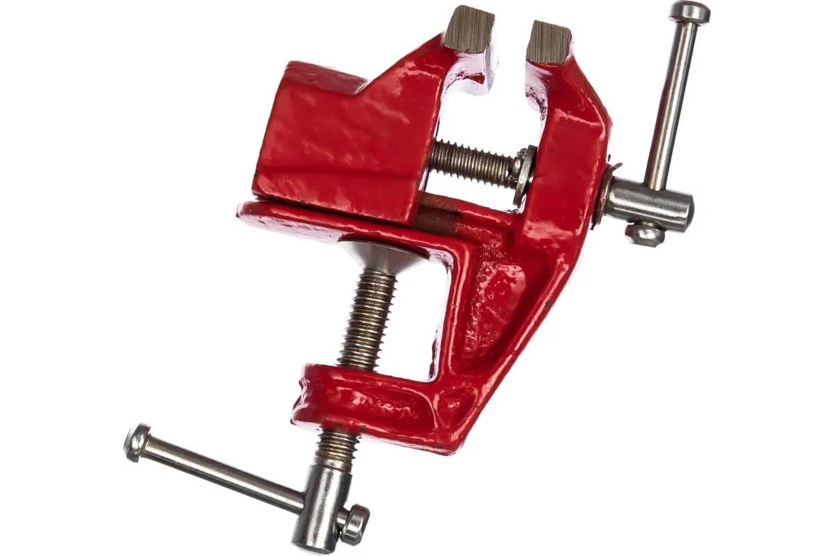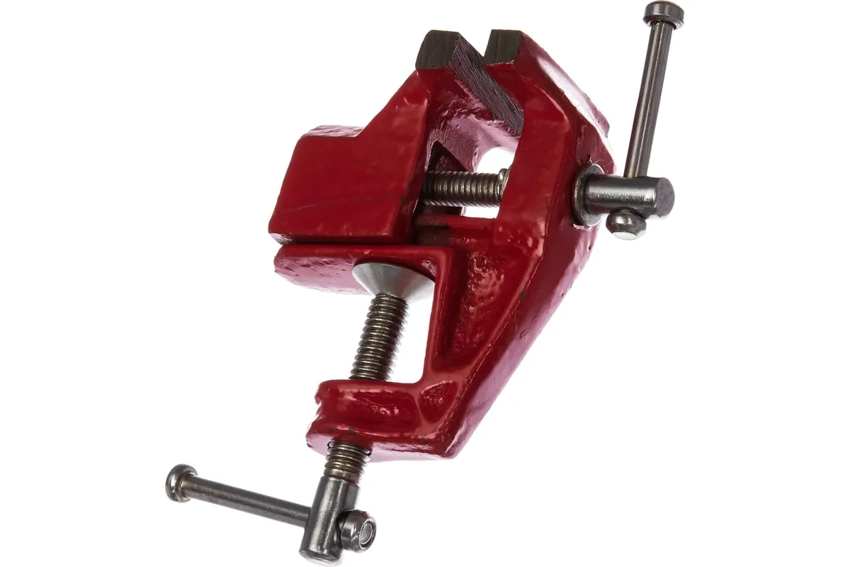 Тиски с креплением для стола позволяют надежно зафиксировать небольшие деревянные детали. Пригодятся при выполнении столярных и слесарных работ в мастерской или гараже. Рабочий ход составляет 30 мм, что позволяет устанавливать малогабаритные изделия.