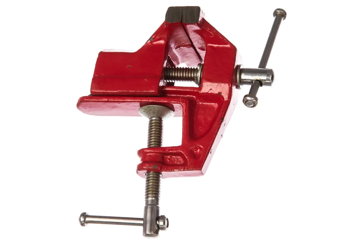 Тиски с креплением для стола позволяют надежно зафиксировать небольшие деревянные детали. Пригодятся при выполнении столярных и слесарных работ в мастерской или гараже. Рабочий ход составляет 35 мм, что позволяет устанавливать малогабаритные изделия.