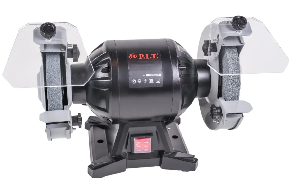 Точильный станок P.I.T. PBG200-C1 используют в небольших мастерских для заточки лезвий слесарного и режущего инструмента, удаления слоев металла, шлифования заготовок. Прочная конструкция поглощает шум и снижает рабочие вибрации. Корпус предохраняет механические узлы от повреждений. С обеих сторон станка установлены прозрачные экраны для защиты от вылета искр, абразивной пыли и стружки.