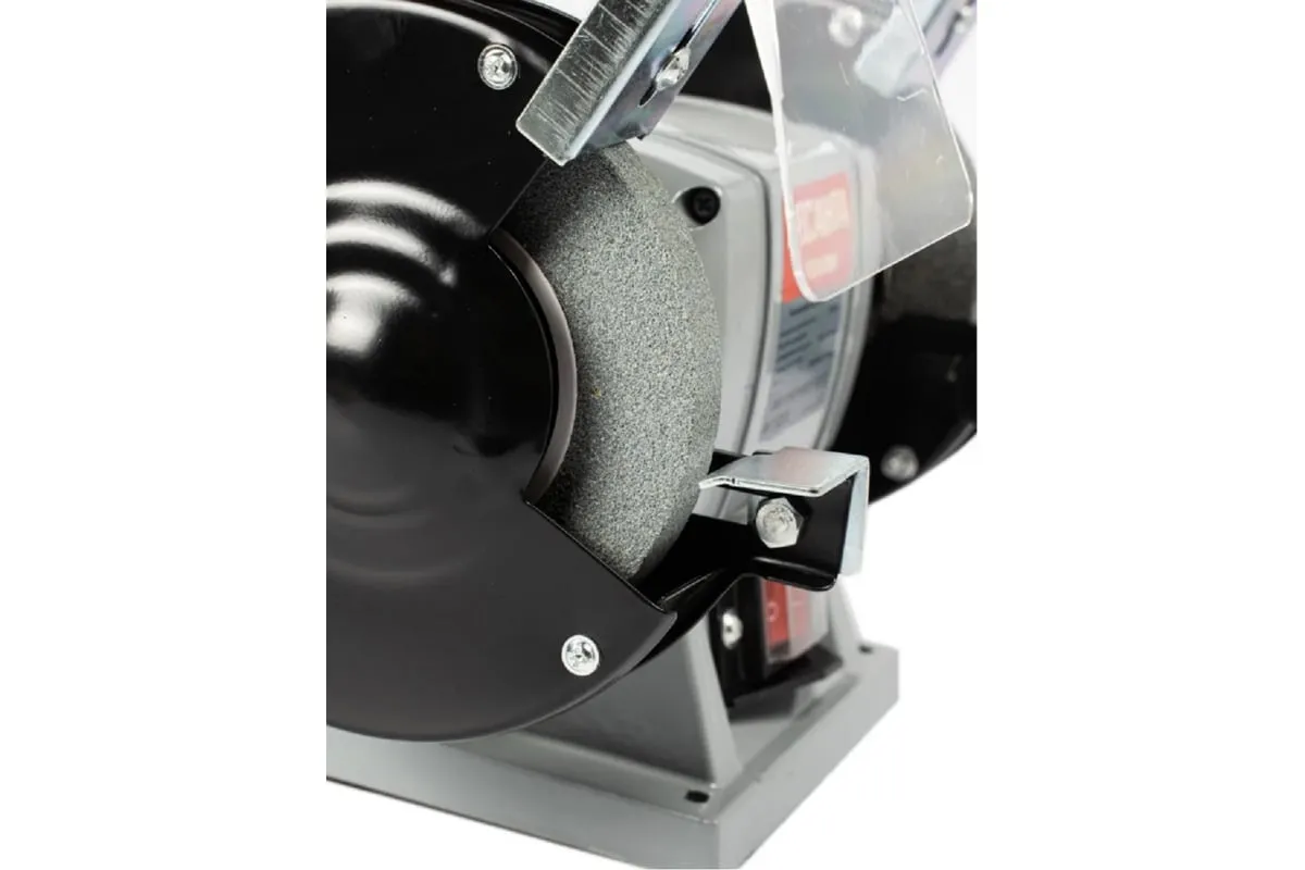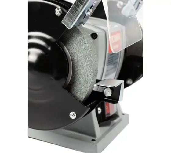 Для обеспечения безопасности во время работы шлифовальные круги защищены металлическими кожухами. Их конструкция разборная, что обеспечивает удобную замену оснастки. В качестве защиты от искр, пыли и абразивных частиц для каждого шлифовального круга предусмотрены металлические искрогасители и защитные экраны из прозрачного пластика. Для удобства использования в нижней части конструкции предусмотрен рабочий упор.