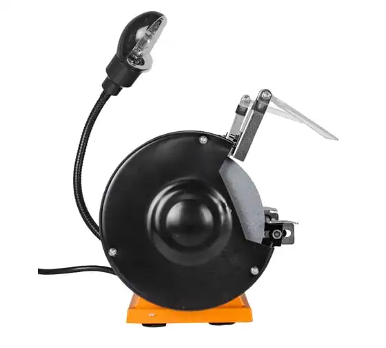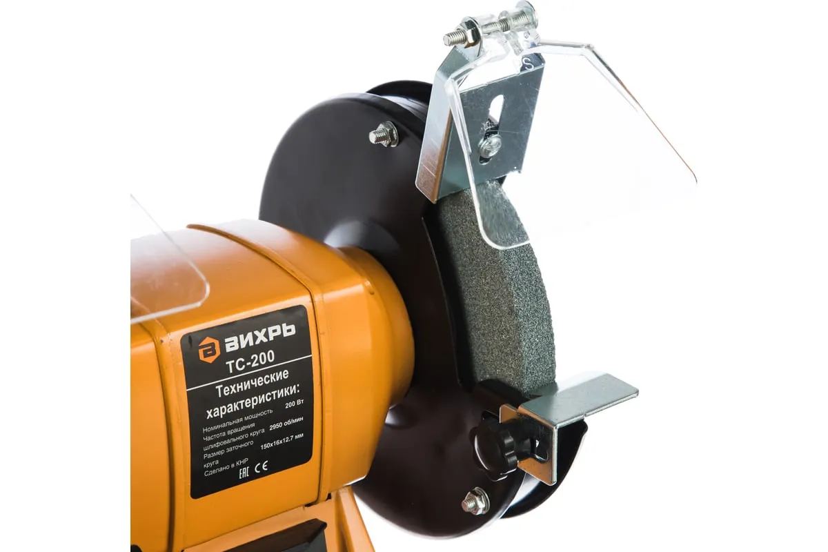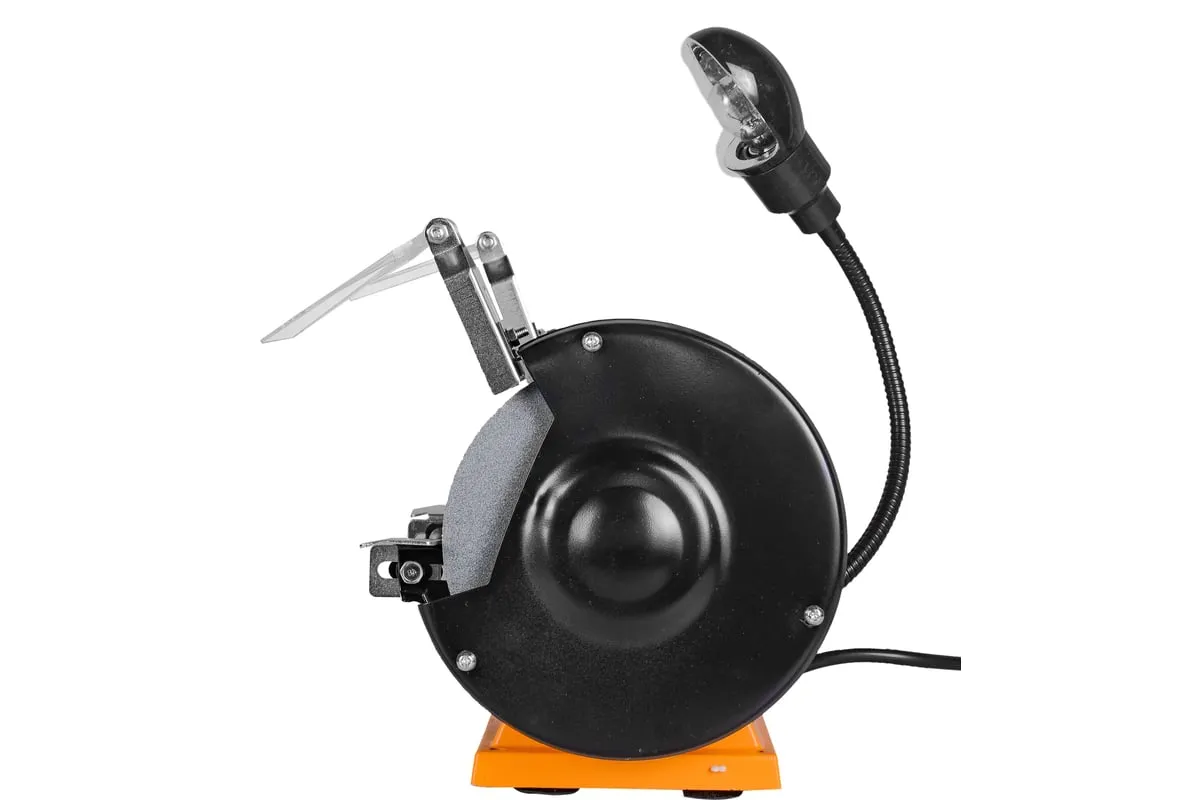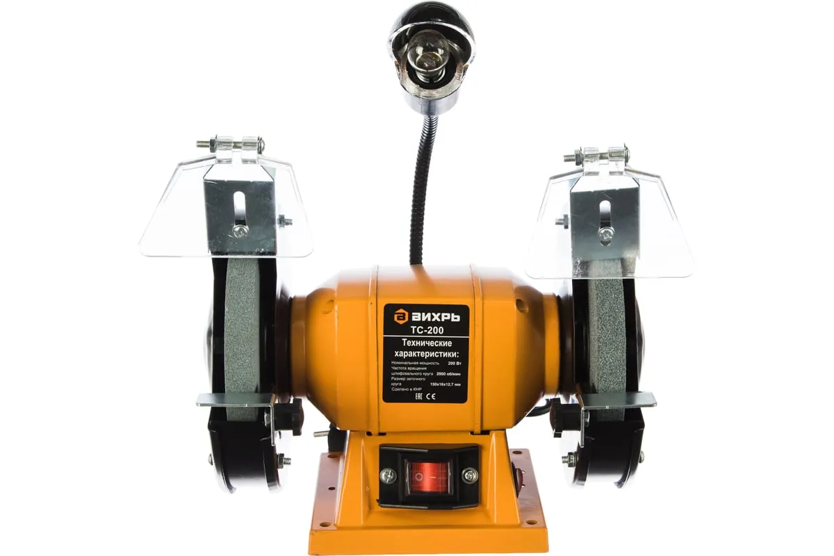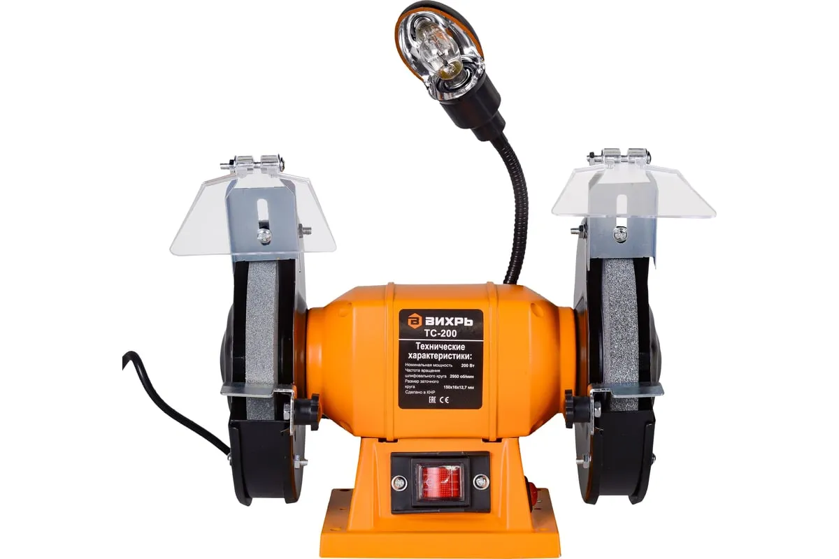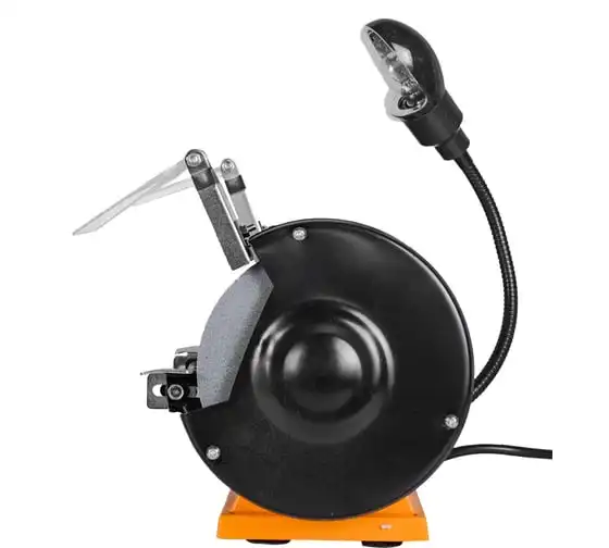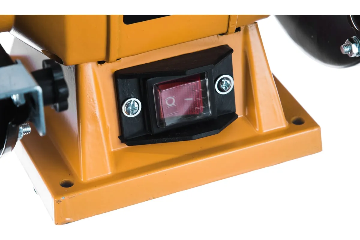 Точильный станок – это простой в использовании и универсальный электроинструмент, который работает от привода электрического мотора мощностью 200 Вт. Основное предназначение – заточка режущего инструмента с ровным лезвием, в том числе ножей, стамесок и пр. Точильный станок имеет продуманную конструкцию. В инструменте используется асинхронный электродвигатель, применение которого помогает уменьшить вибрации во время работы. Для работы могут использоваться шлифовальные круги размером 150х16 мм. Вращаются круги с частотой 2950 об./мин. Рекомендуется устанавливать круги с разной зернистостью.