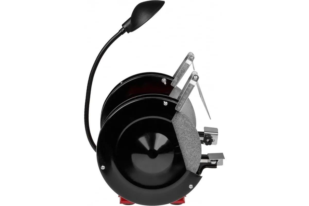 Модель имеет устойчивое основание и пылезащищенный выключатель. Два установленных круга имеют разную зернистость (мелкую и крупную) для заточки различного инструмента.