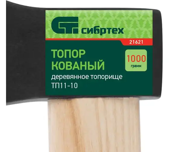 Топор 1000 г СИБРТЕХ 21621 состоит из кованой стальной головки и деревянной рукоятки. Используется для рубки дров, валки деревьев. Твердость рабочей кромки составляет 50-52 HRc. Обух надежно фиксируется в рукоятке, что исключает случаи выпадения его при работе. Лаковое покрытие защищает топорище от рассыхания и механических повреждений.