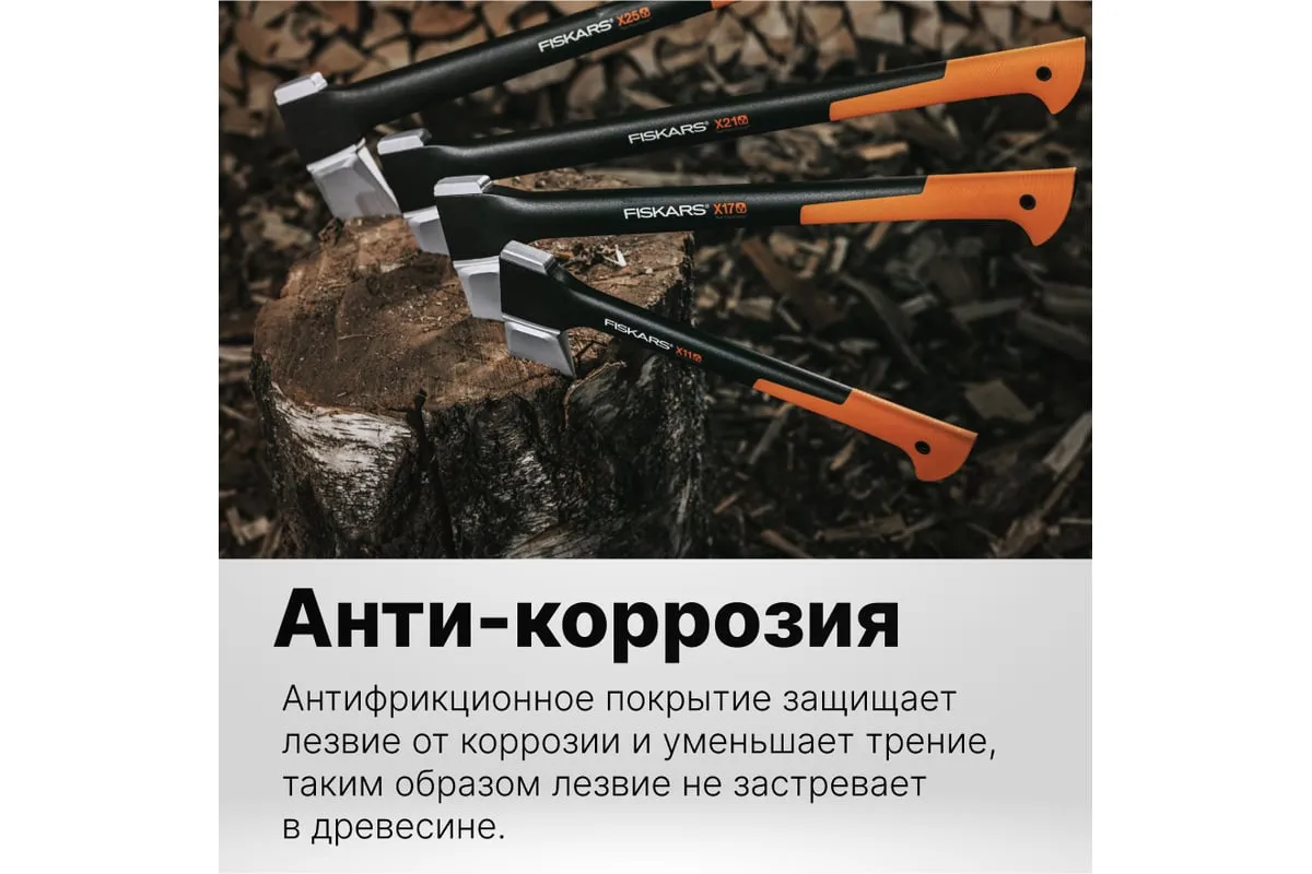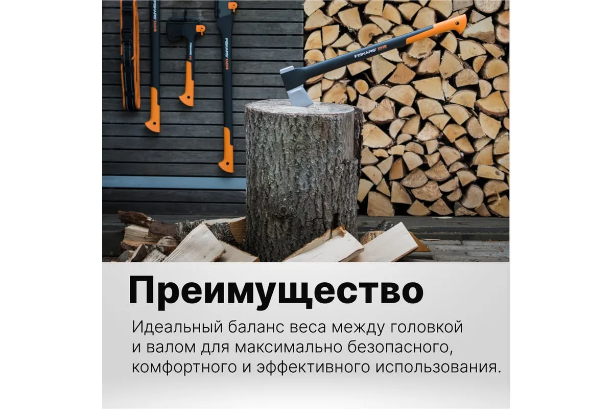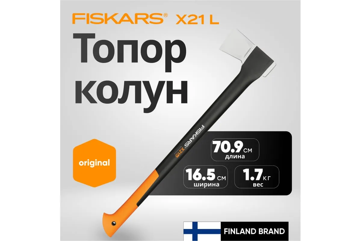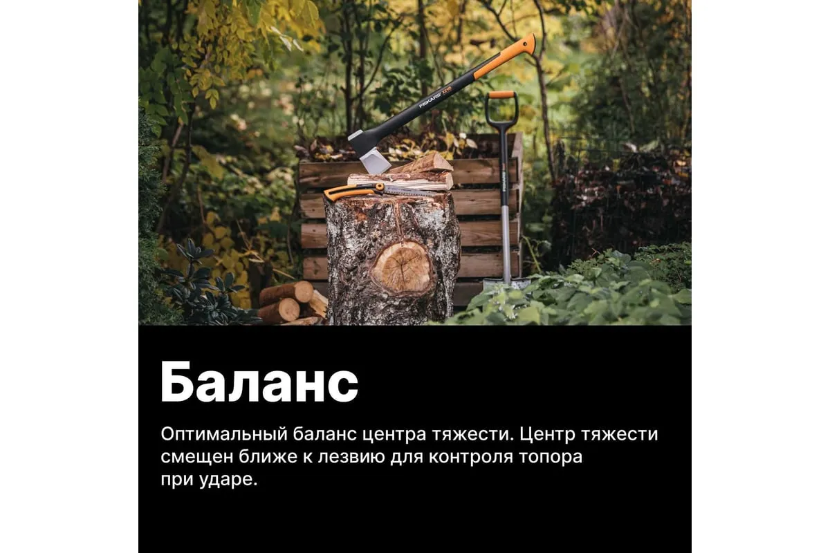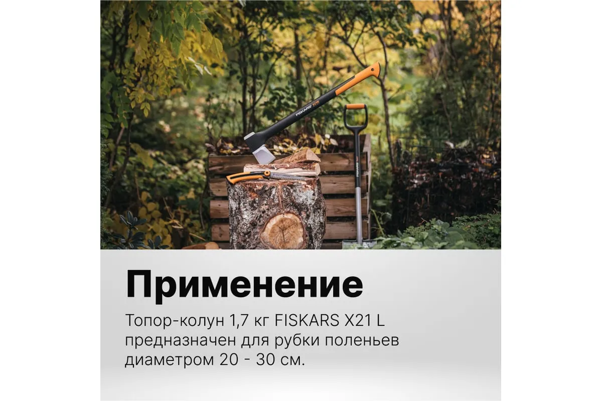Топор-колун Fiskars X21-L 1015642 (122473) предназначен для рубки поленьев диаметром от 20 до 30 см. Лезвие из стали с двойной степенью закалки обладает высокой прочностью и долговечностью. Амортизирующее покрытие рукоятки SoftGrip обеспечивает крепкий захват и препятствует выскальзыванию инструмента из рук во время работы. Данная модель отличается усовершенствованным балансом между длиной рукоятки и весом, благодаря чему топором удобно пользоваться.