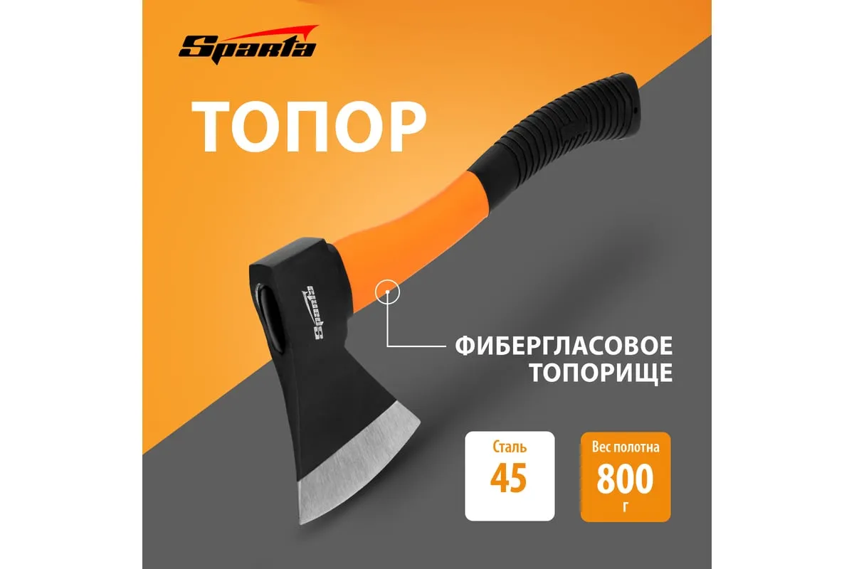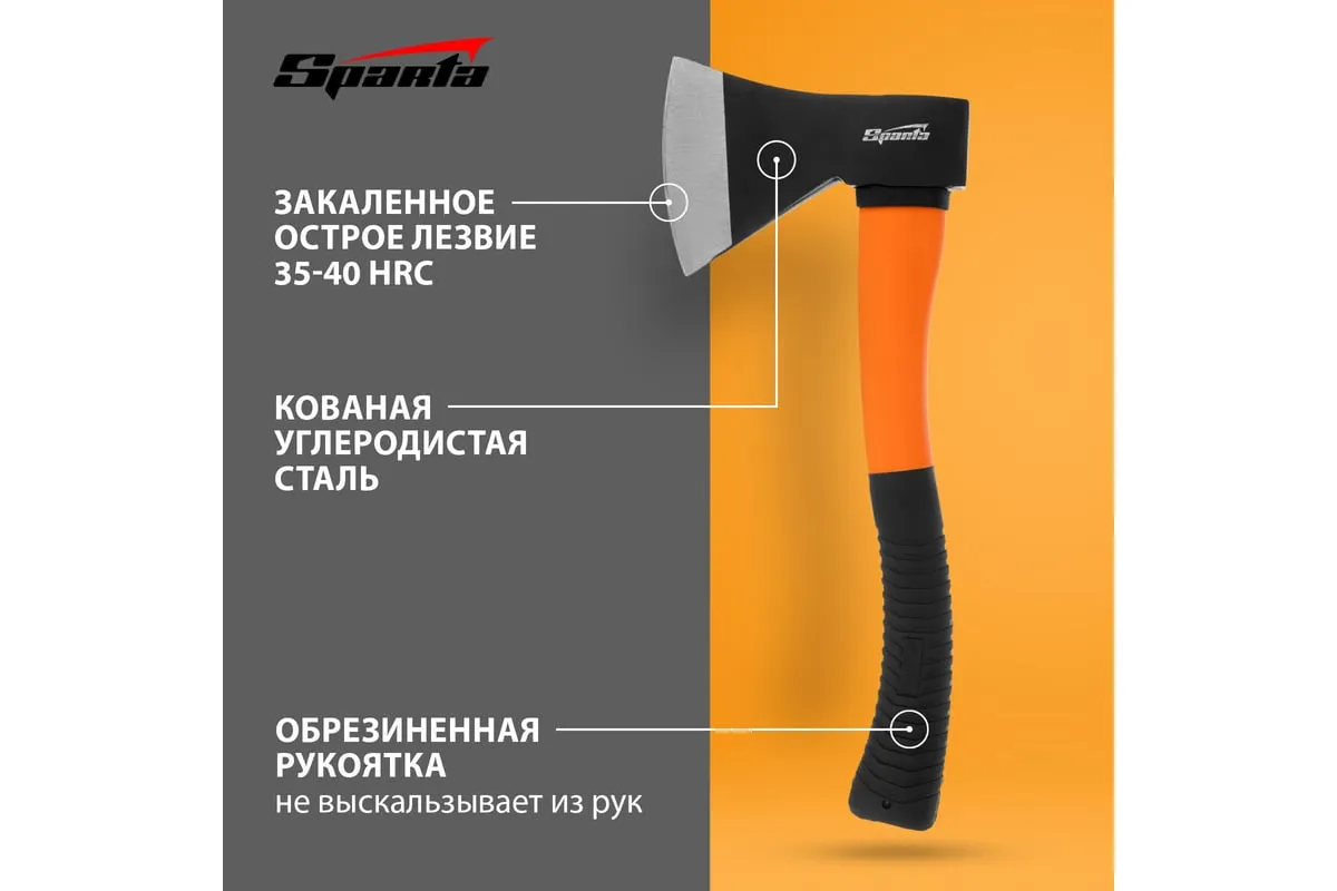 Топор SPARTA 21639 обладает мощной ударной силой. Рабочая часть выполнена прочной стали, что определяет долговечность инструмента. Фибергласовая рукоятка не скользит в руках и обеспечивает надежный захват инструмента во время работы.