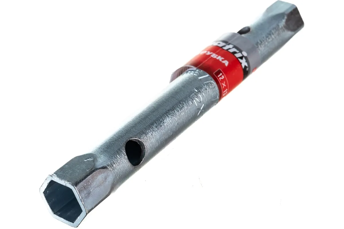 Торцевой ключ-трубка 12х13 мм MATRIX 13714 применяется при ремонте и обслуживании автомобиля. Инструмент имеет форму цилиндра с двумя шестигранными головками на конце размером 12 и 13 мм. Инструмент изготовлен из высокопрочной легированной стали с защитным антикоррозийным покрытием, что значительно продлевает срок его службы.