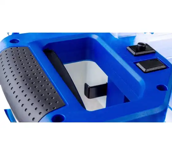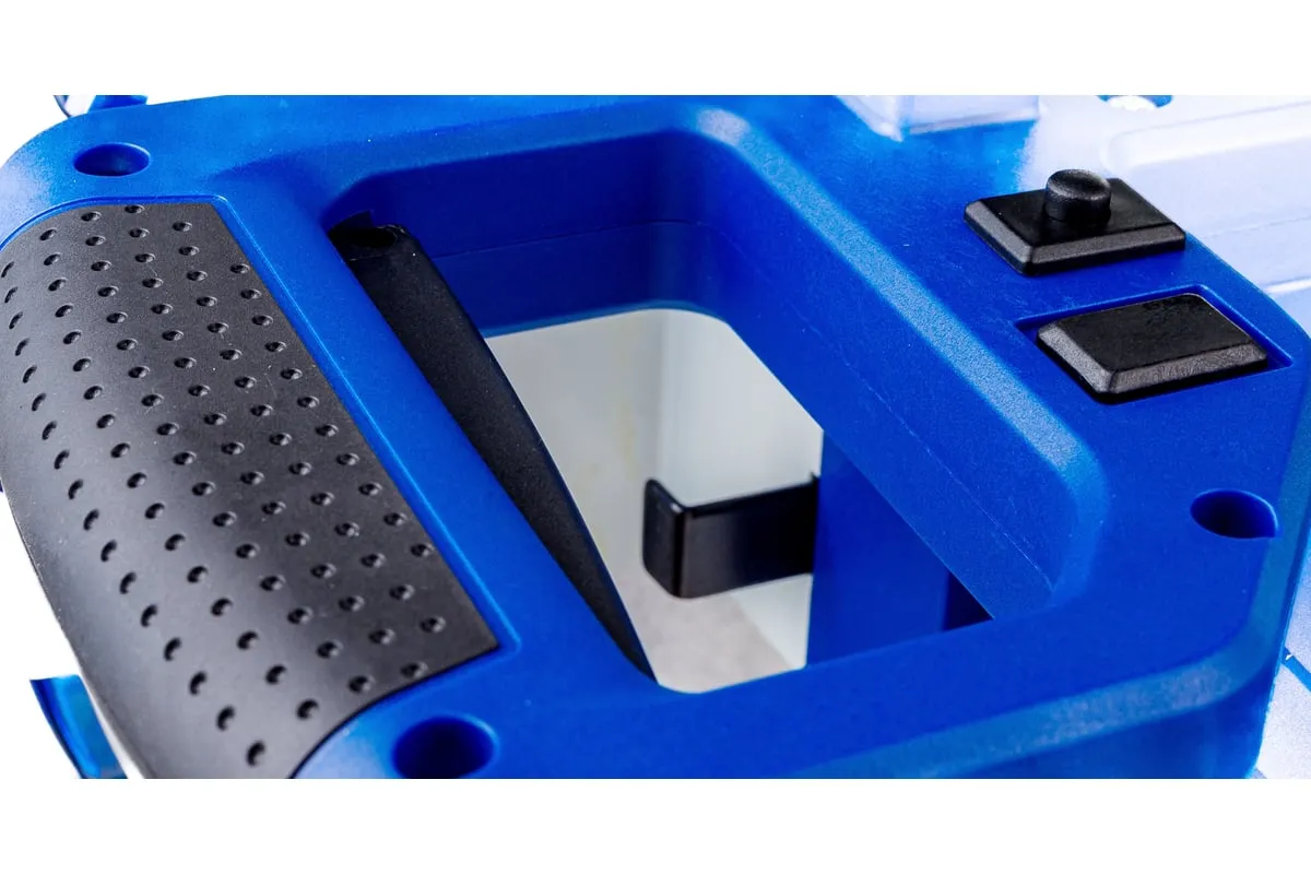 Пильный узел оснащен механизмом протяжки (горизонтальное перемещение), который обеспечивает продольный ход пильной части, благодаря чему ширина пиления увеличена.