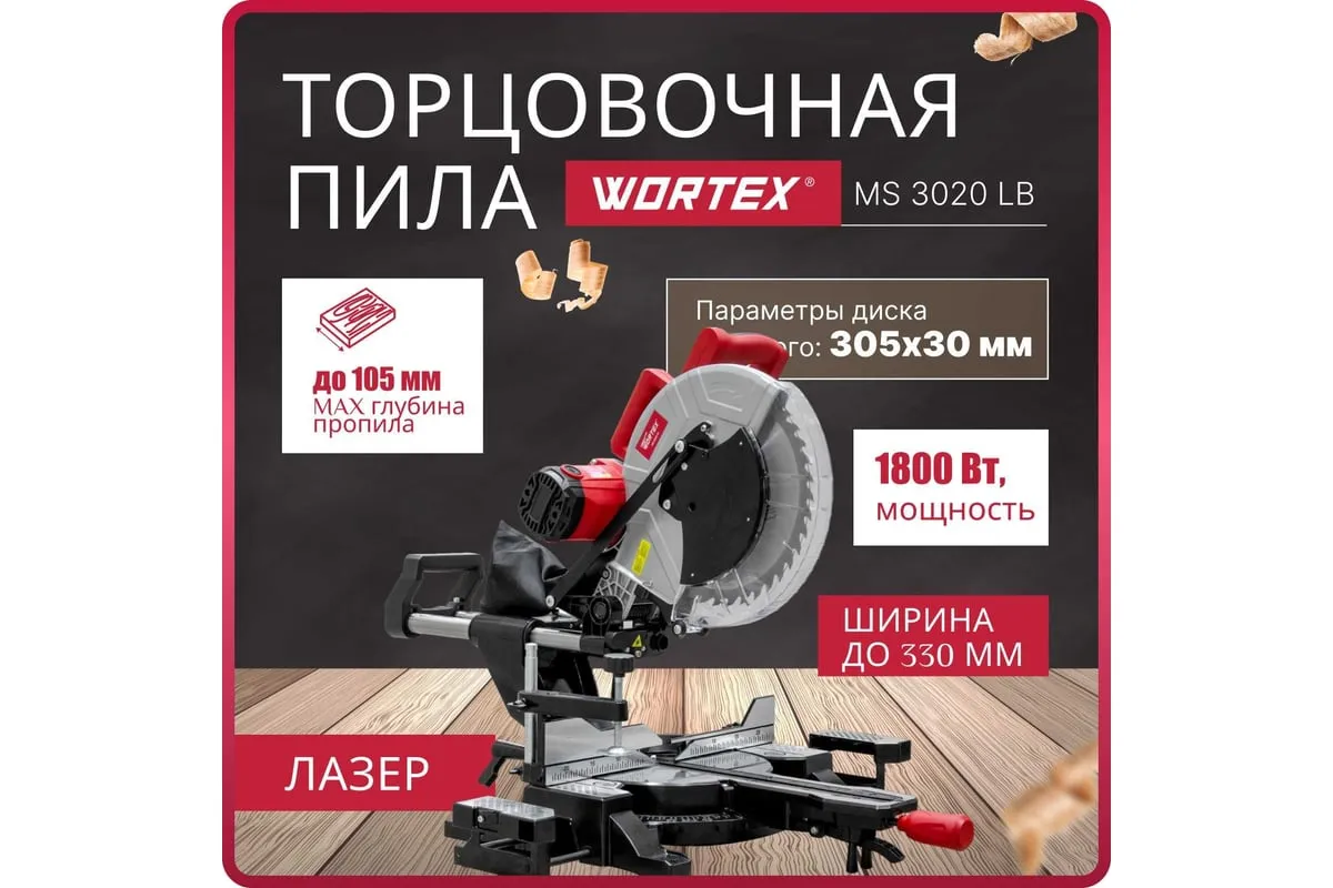 Торцовочная пила WORTEX MS 3020 LB 0329127 отличается мощным двигателем с ременной передачей, что в свою очередь делает его более надежным и менее шумным.