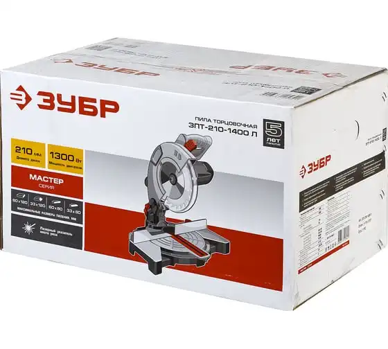 Торцовочная пила ЗУБР ЗПТ-210-1400 Л обладает компактными размерами и небольшим весом. Служит для прямого, косого и комбинированного пиления заготовок из древесины толщиной до 60 мм.