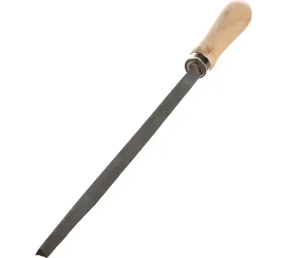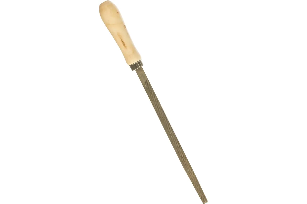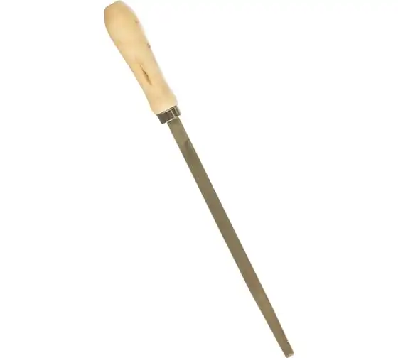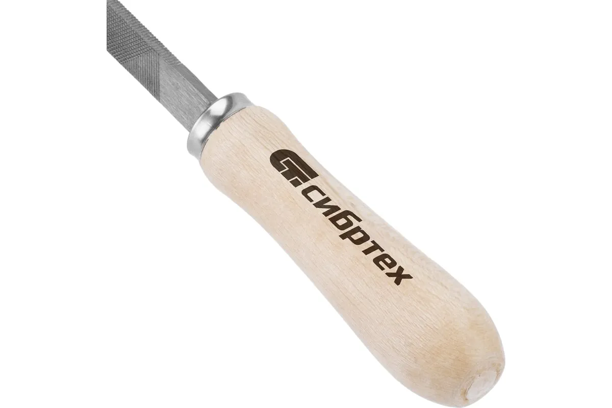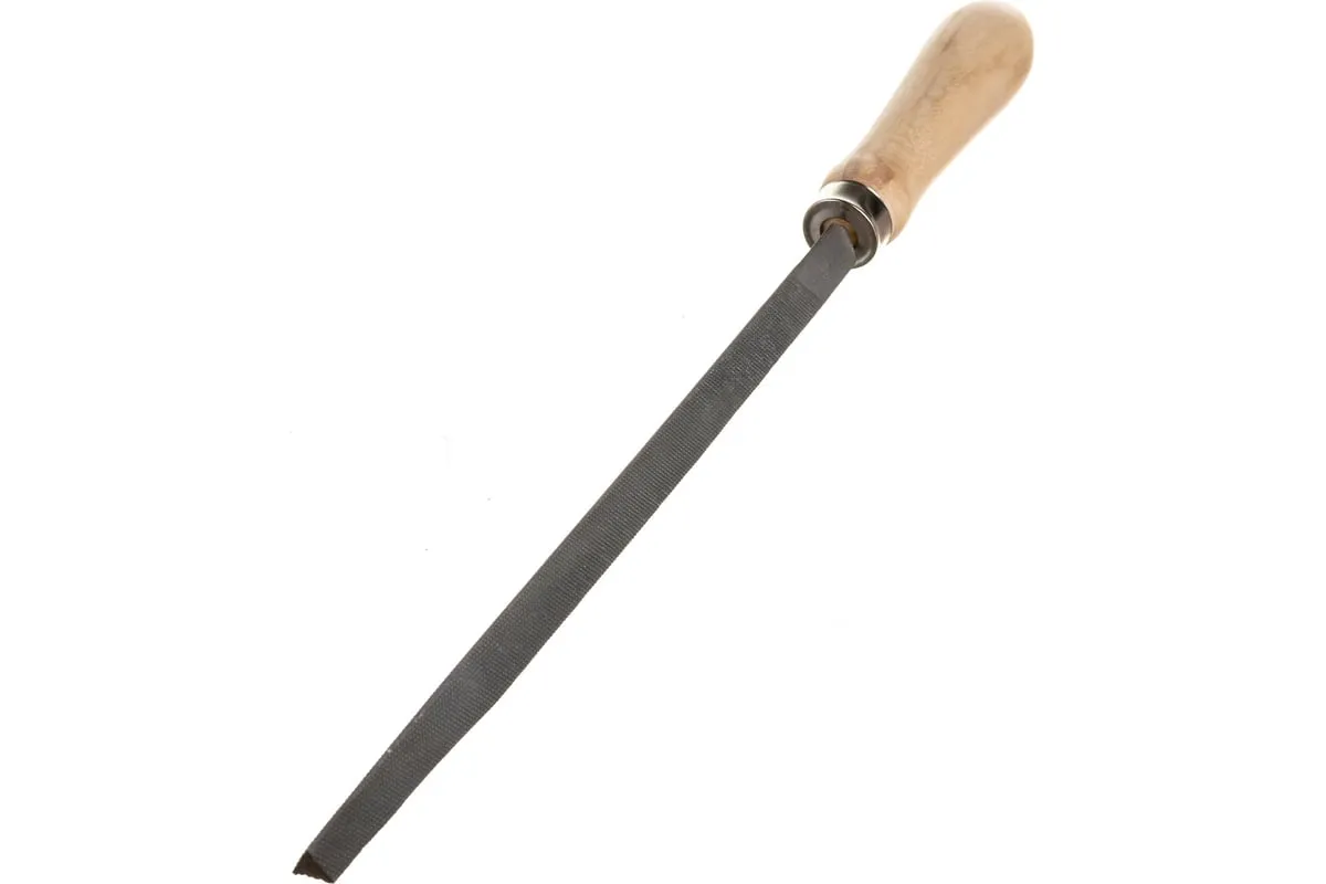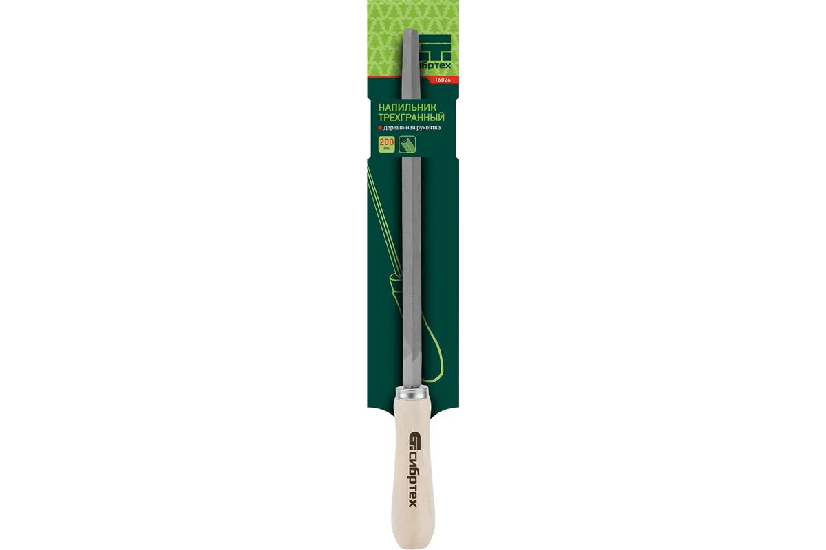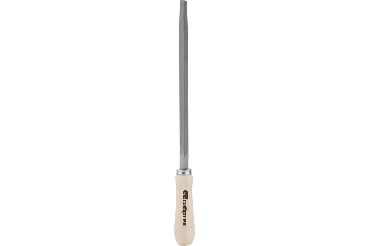 Трехгранный напильник Сибртех 16026 с деревянной ручкой, длина рабочей части 200 мм, используется для доводки металлических деталей. Им опиливают грани, внутренние углы, треугольные отверстия. Тип насечки — №2, поэтому инструмент рекомендован для промежуточной шлифовки после опиливания драчевым напильником. Используется в слесарном деле и в бытовых целях.
