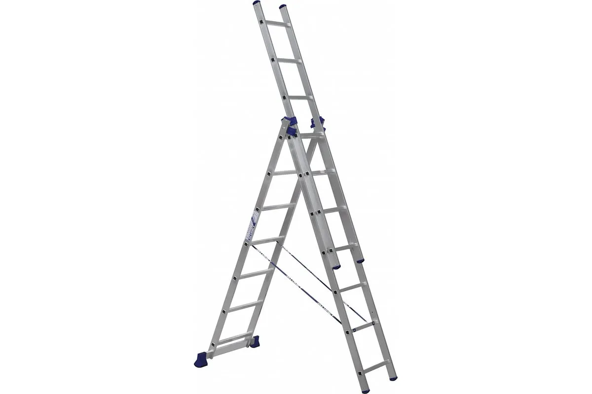 Лестница алюминиевая трехсекционная универсальная– замечательный выбор для проведения работ на высоте.