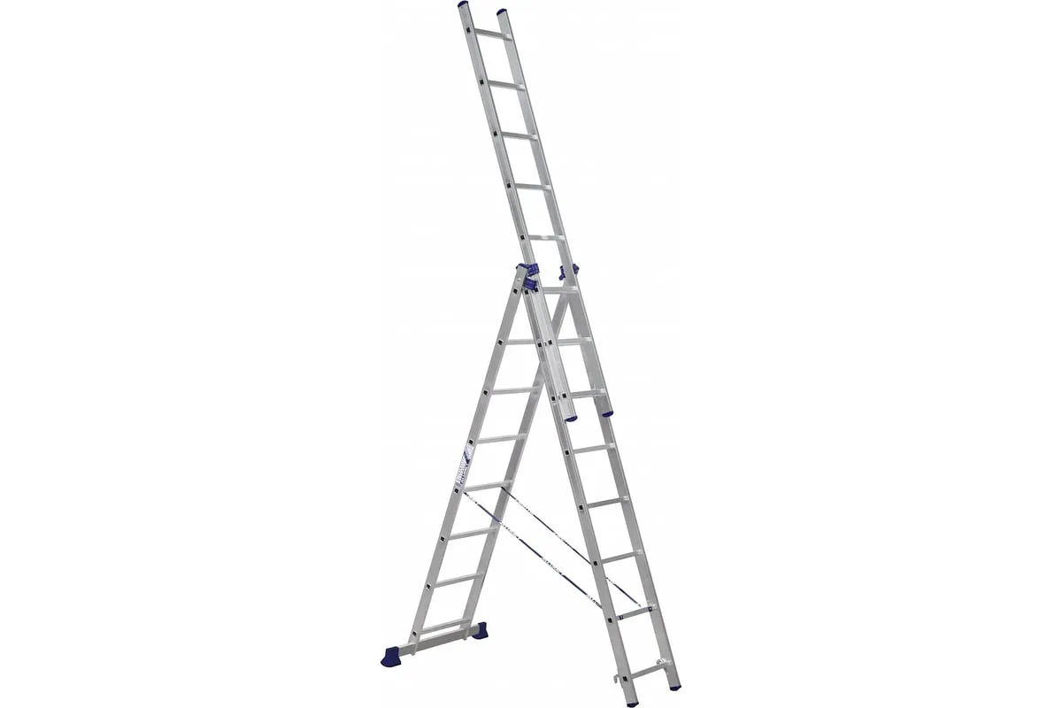 Лестница алюминиевая трехсекционная универсальная– замечательный выбор для проведения работ на высоте.