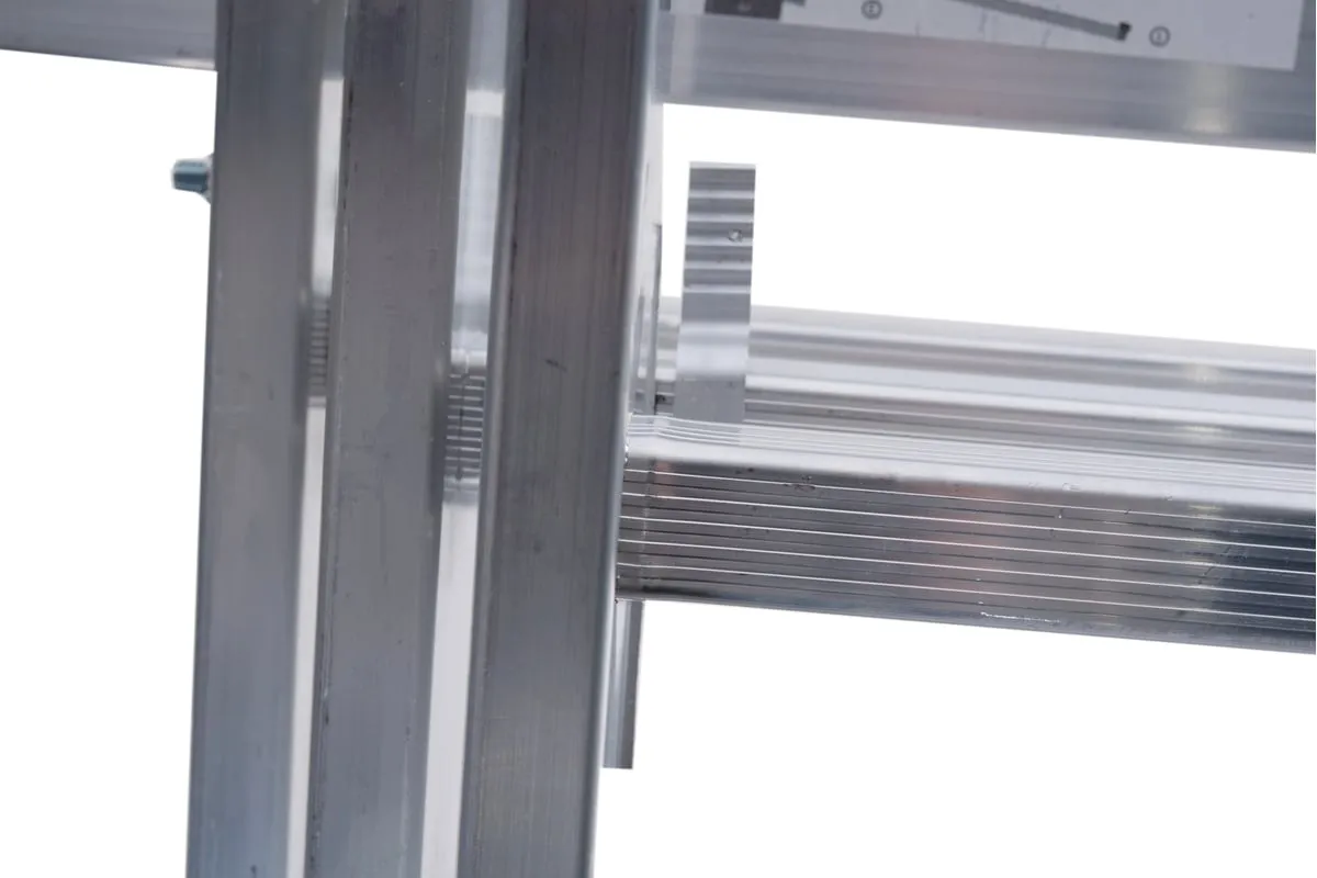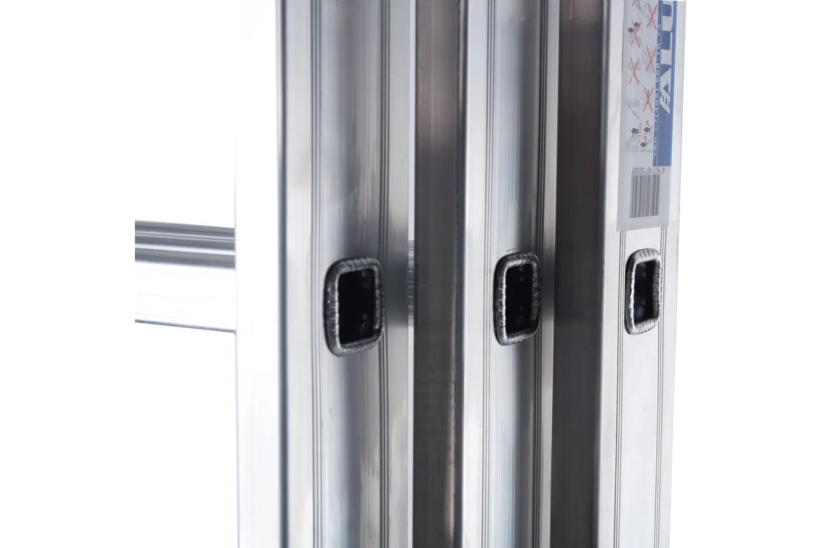 Алюминиевый сплав обеспечивает изделию прочность и легкость. Продуманное расположение ступеней создает оптимальные условия для подъема и безопасного удержания на высоте.