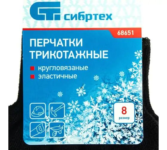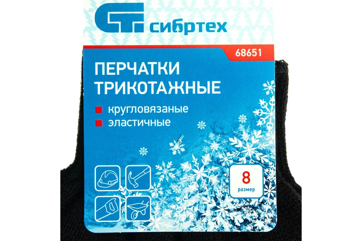 Трикотажные перчатки Сибртех 68651 черного цвета, из акрила, обработанные оверлоком, используют во время строительных и монтажных работ. Они надежно защищают руки от холода, а также от травм и загрязнений. Благодаря своей эластичности перчатки легко надеваются и не стесняют движения пальцев по время работы.