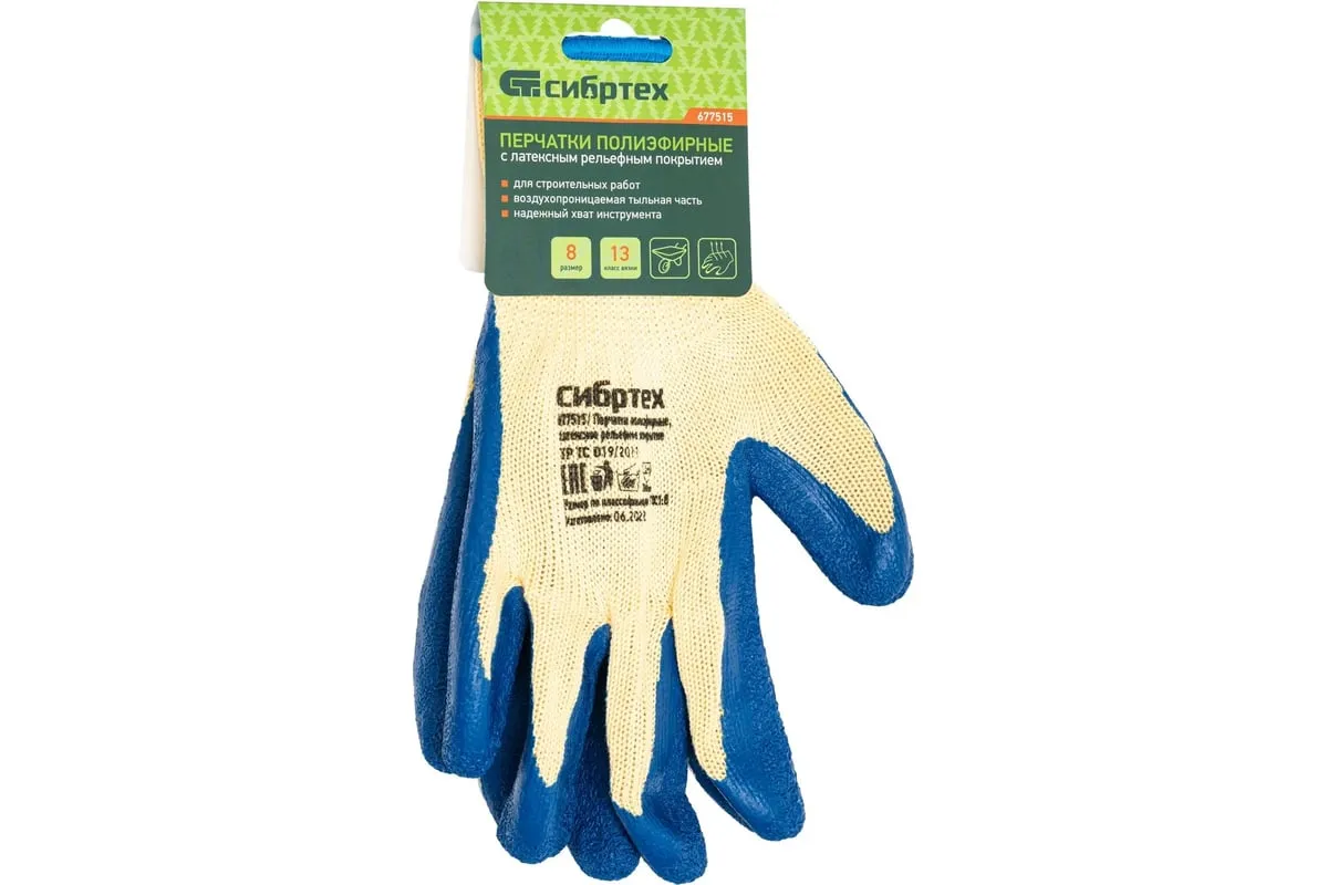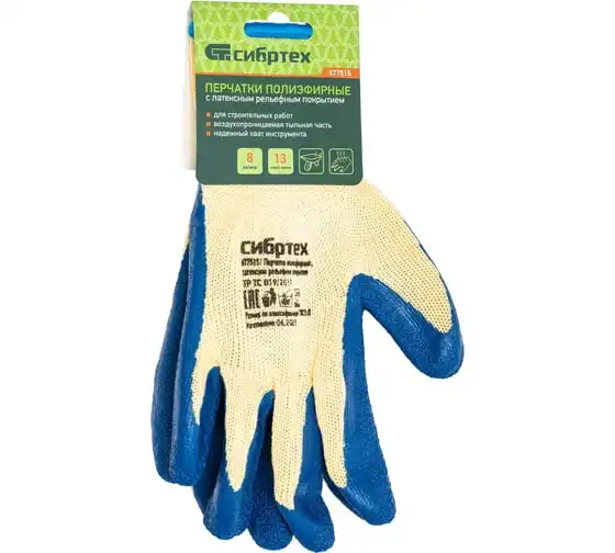 Трикотажные полиэфирные перчатки Сибртех с латексным рельефным покрытием предназначены для защиты рук от механических воздействий и общепроизводственных загрязнений при выполнении хозяйственных, ремонтных, строительных работ.
