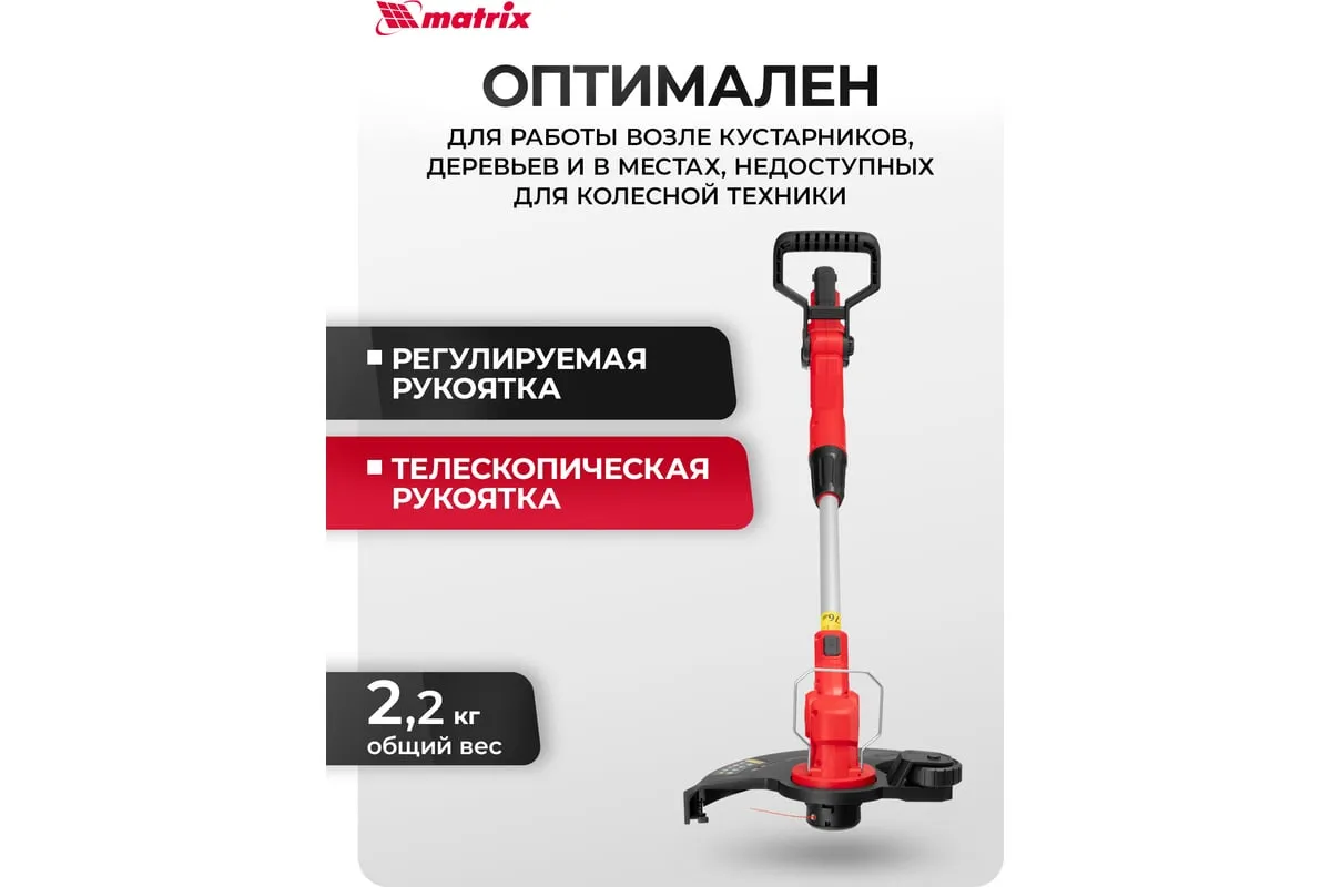 Аккумуляторный триммер MTX GM-300 58731 предназначен для скашивания травы и сорняков, ширина скашивания составляет 300 мм. Работает от аккумулятора Li-Ion 20 В, благодаря собственному автономному источнику питания позволяет свободно перемещаться по участку. Аккумулятор Li-Ion без эффекта памяти допускает подзарядку без потери емкости, обеспечивает стабильную работу в течение длительного времени. Триммер предназначен для бытового использования, будет полезен владельцам дачных участков.