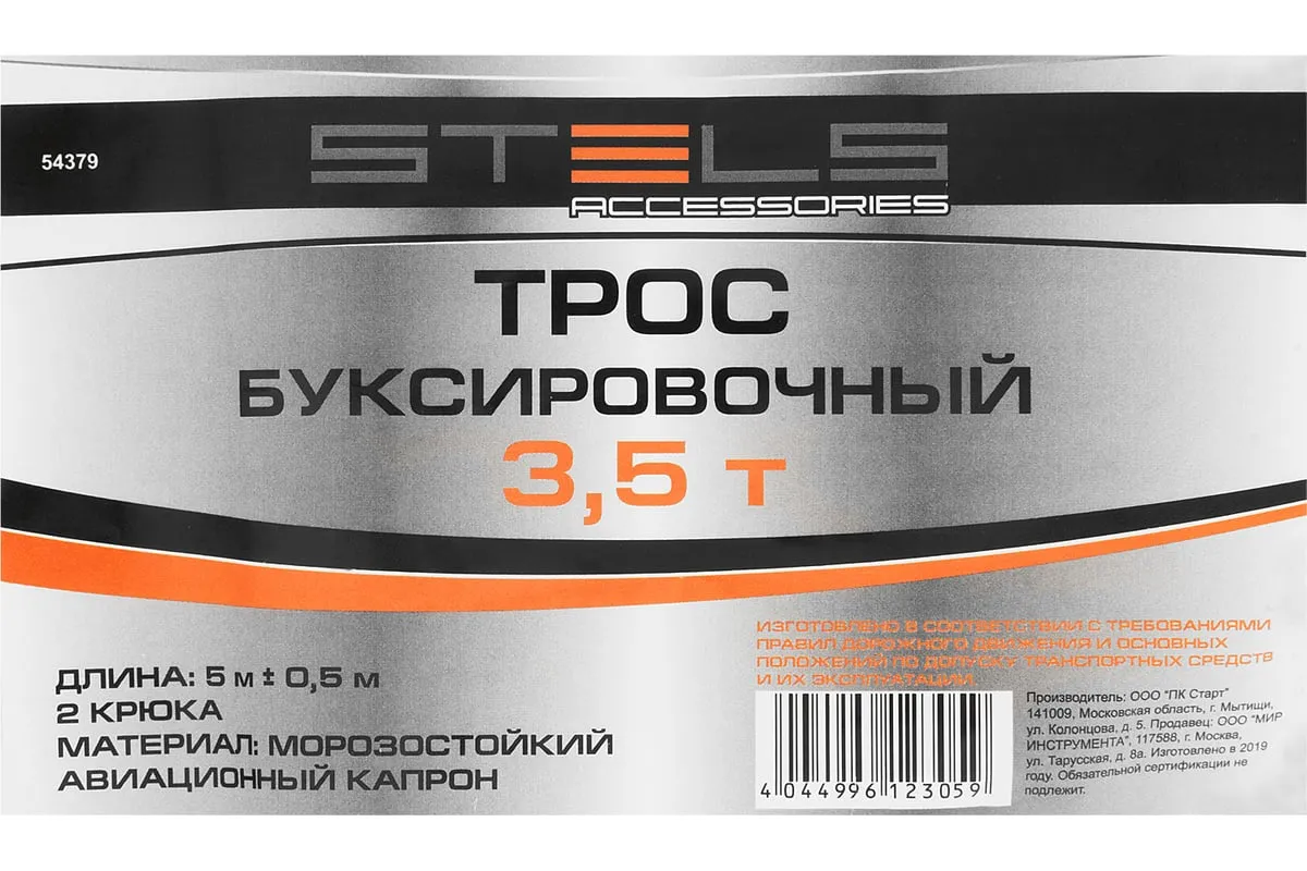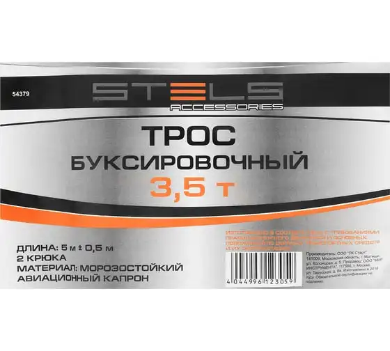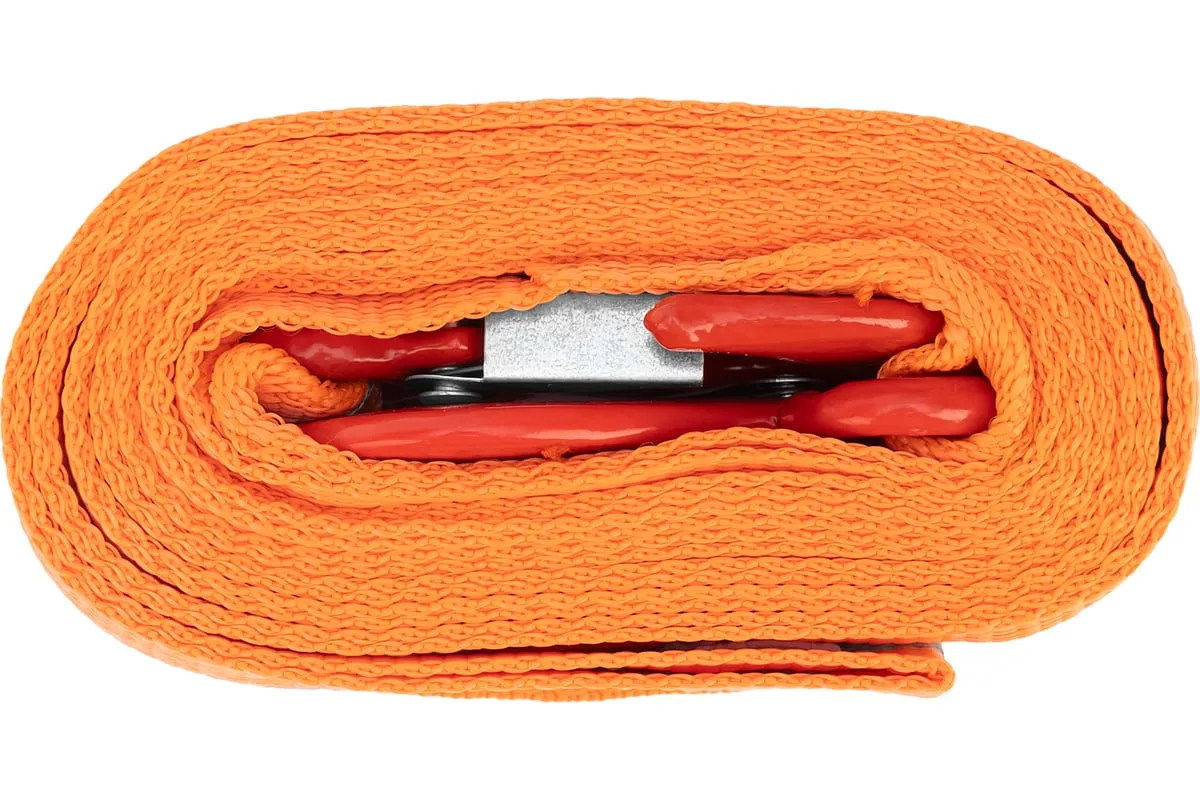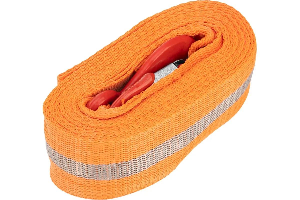 Трос буксировочный Stels 54379 с 2 крюками, поставляющийся в сумке на молнии, используется для буксировки на гибкой сцепке легковых автомобилей массой до 3,5 тонн. Выручит автолюбителя в сложной ситуации на дороге: если закончилось топливо, сломался двигатель, застряли колеса и т. д.
