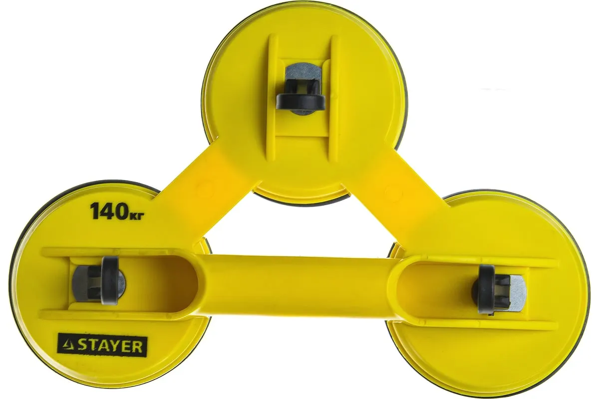 Тройной пластмассовый стеклодомкрат STAYER MASTER MAXLift 140 кг 33718-3 предназначен для надежного захвата и удобной транспортировки стекольных изделий, а также других грузов, имеющих гладкую и ровную поверхность. Он имеет вакуумный принцип работы и способен удерживать груз весом до 140 кг. Широкая рукоятка обеспечивает крепкий захват и облегчает транспортировку. Противоскользящее основание выполнено из специальной резины.