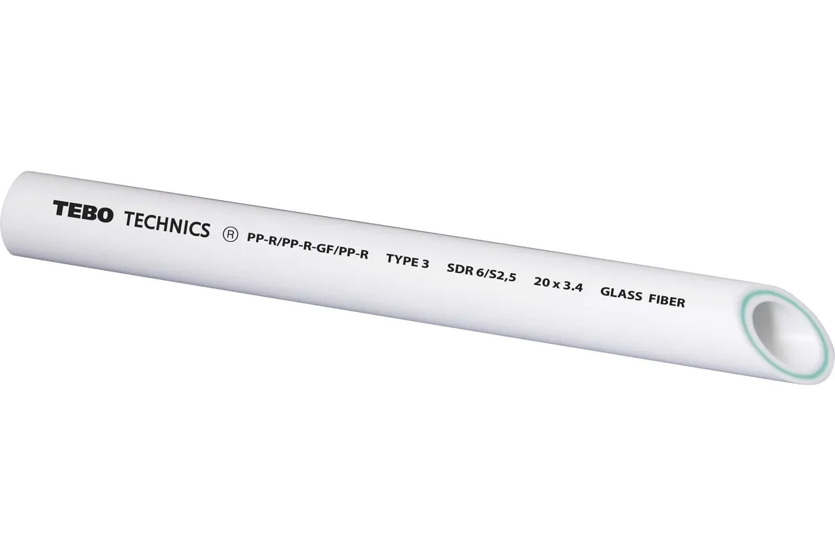Полипропиленовые трубы TEBO technics (SDR6) применяются в системах хозяйственно-питьевого назначения, горячего водоснабжения, отопления, а также в качестве технологических трубопроводов, транспортирующих жидкости и газы, не агрессивные к материалам трубы и фитингов.