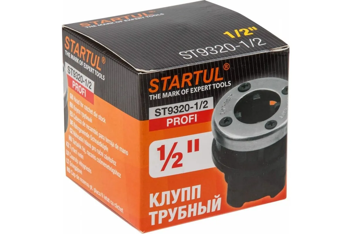 Трубный клупп STARTUL 1/2 ST9320-1/2 предназначен для нарезания наружной трубной конической резьбы стандарта BSPT. Резцы выполнены из качественной инструментальной стали. Хромовое покрытие защищает инструмент от коррозии. Направление резьбы - правое. Тип головки - R11.