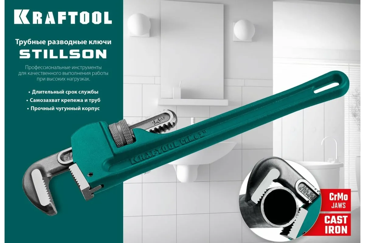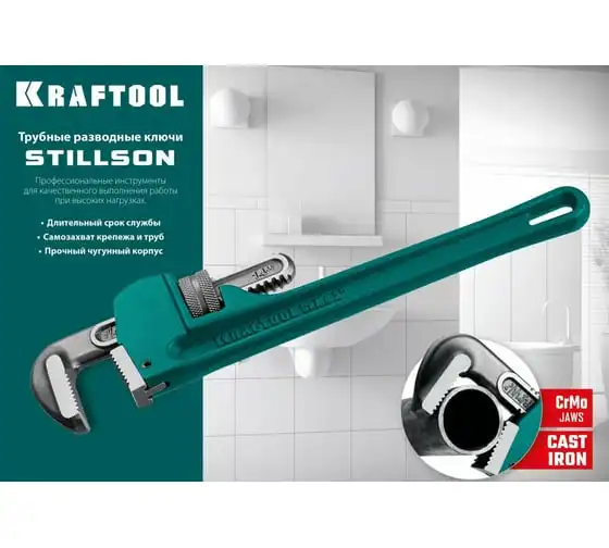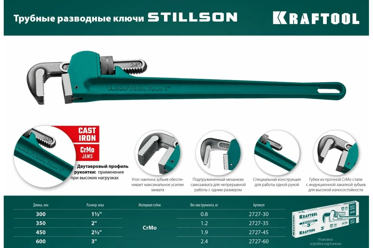 Трубный разводной ключ KRAFTOOL Stillson 3", 2727-60 предназначен для захвата деталей различного поперечного сечения при проведении работ с применением значительных усилий. Легко настроить на работу с гайками нужного размера. Благодаря длинной рукоятке инструмент имеет рычаг для простоты вращения крепежа.Конструкция обладает высокой прочностью и допускает приложение значительных усилий без риска деформации инструмента.