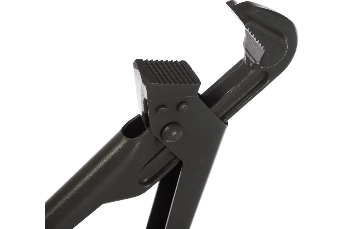 Трубный рычажный ключ КТР-2 НИЗ Без бренда 15790 имеет подвижную губку с зубцами, наклоненными против направления вращения, что снижает вероятность проскальзывания и способствует более прочному захвату. Ключ изготовлен из инструментальной стали марки 45, благодаря чему обладает высокой износоустойчивостью и долговечностью.