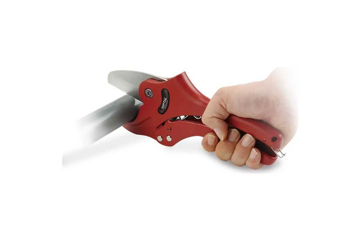 Инструмент подходит для резки ПВХ, полиэтилена, синтетических труб, резиновых шлангов и различных видов пластиковых труб или трубок. Лезвие изготовлено из нержавеющей стали, корпус - из алюминиевого сплава.
