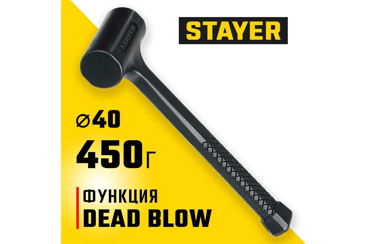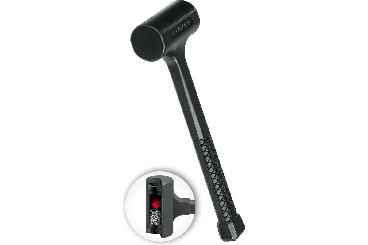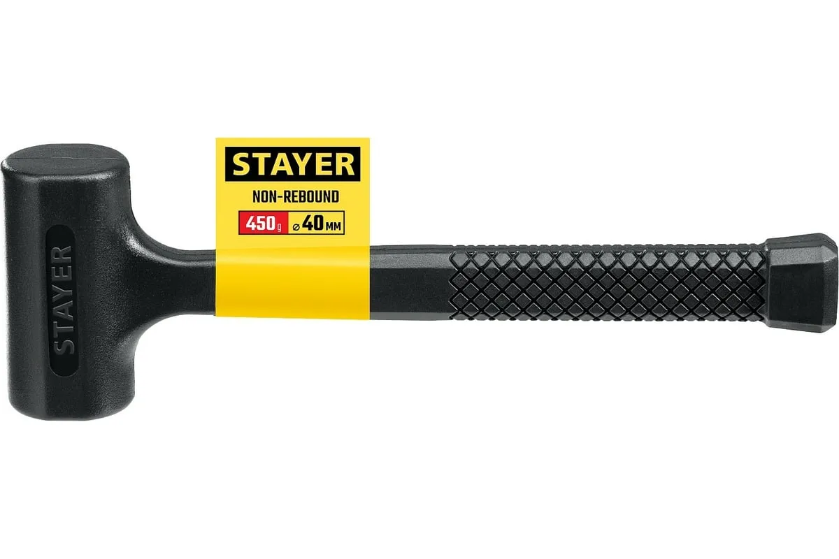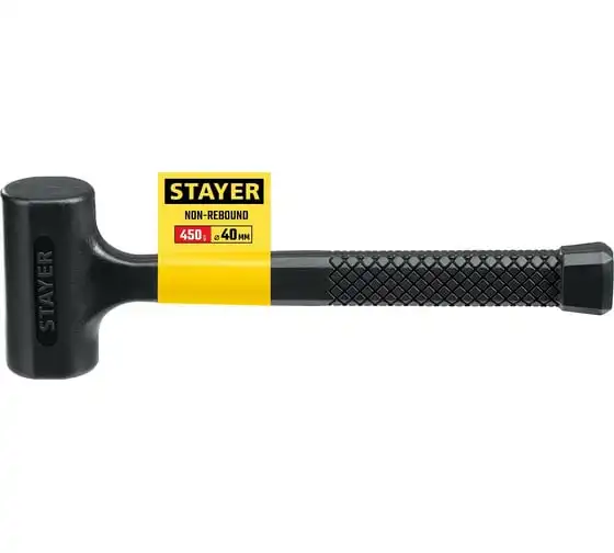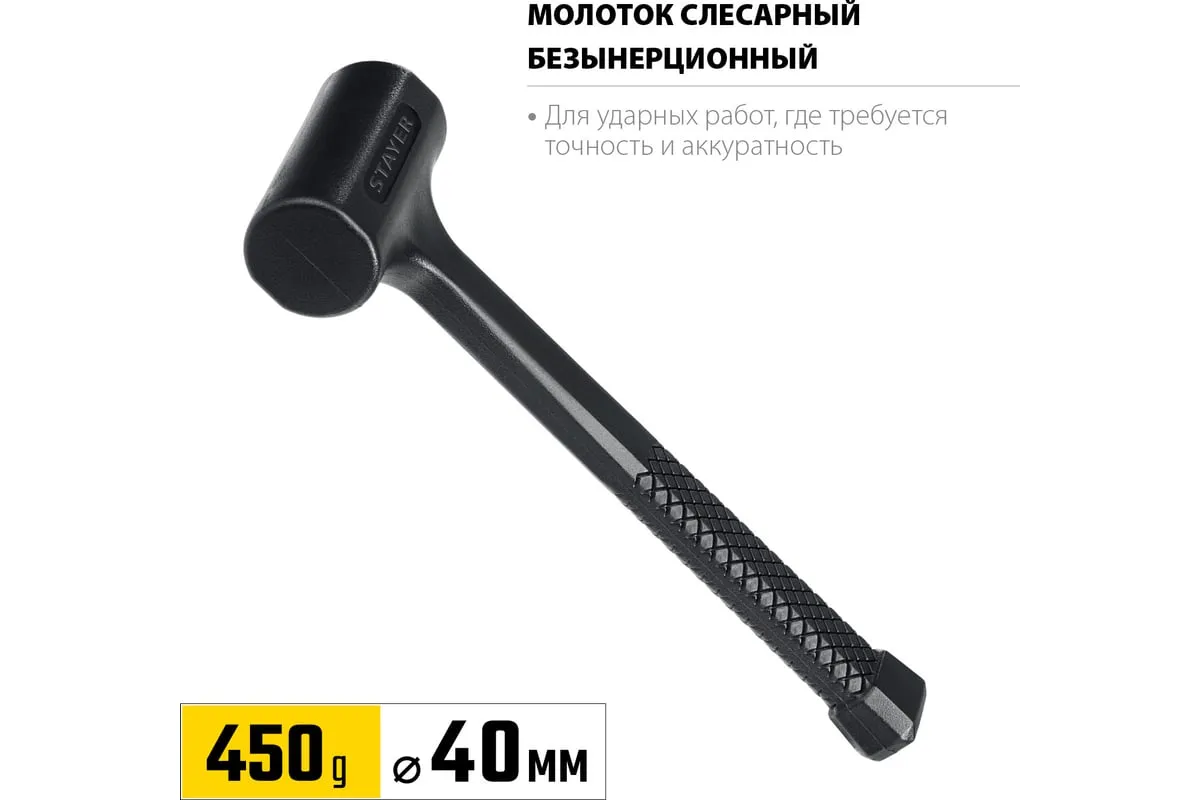 Цельнолитой безынерционный молоток STAYER 450 г, 40 мм 2042-450 используется для ударных работ, где требуется точность и аккуратность. Функция DEAD BLOW предотвращает отскок при ударе, повышает контроль и увеличивает мощность. Инструмент предназначен для слесарно-монтажных и демонтажных работ, а также для работ с мягкими листовыми материалами. Покрытие корпуса масло- и химически устойчивое, исключает искры и царапины на обрабатываемой поверхности.