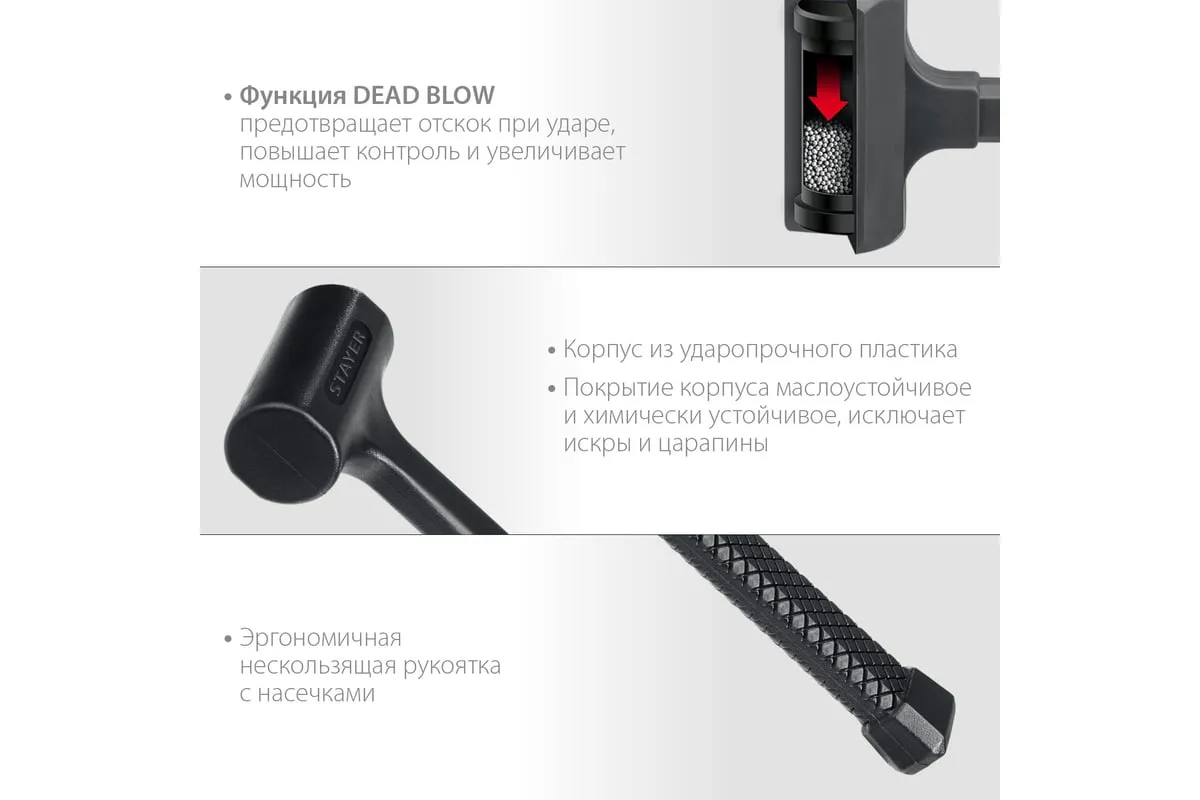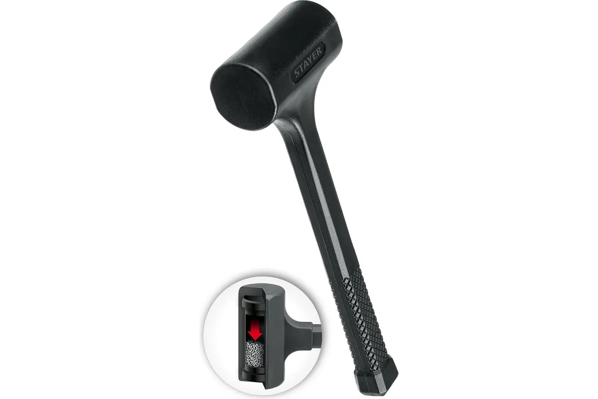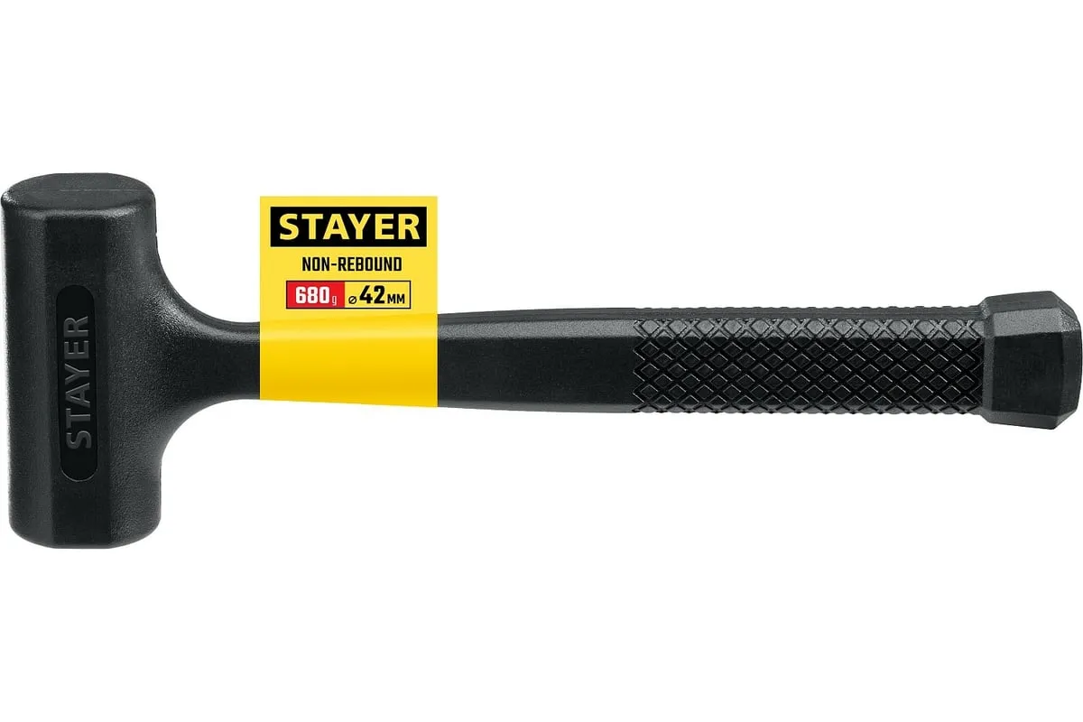 Цельнолитой безынерционный молоток STAYER 680 г, 42 мм 2042-680 используется для ударных работ, где требуется точность и аккуратность. Функция DEAD BLOW предотвращает отскок при ударе, повышает контроль и увеличивает мощность. Инструмент предназначен для слесарно-монтажных и демонтажных работ, а также для работ с мягкими листовыми материалами. Покрытие корпуса масло- и химически устойчивое, исключает искры и царапины на обрабатываемой поверхности.