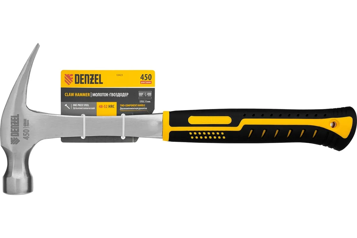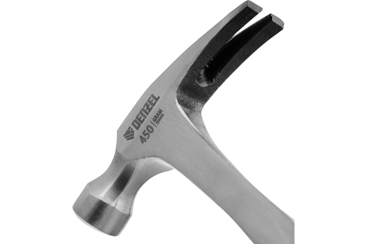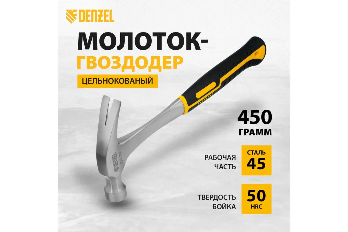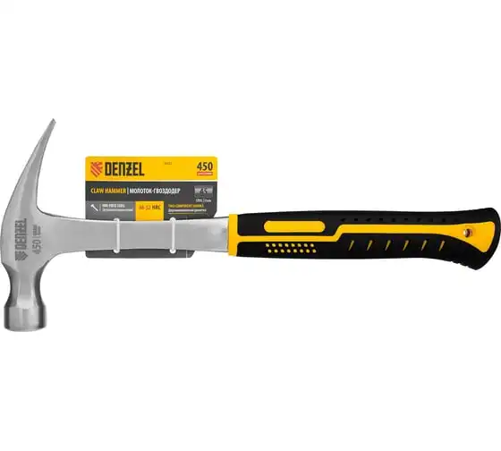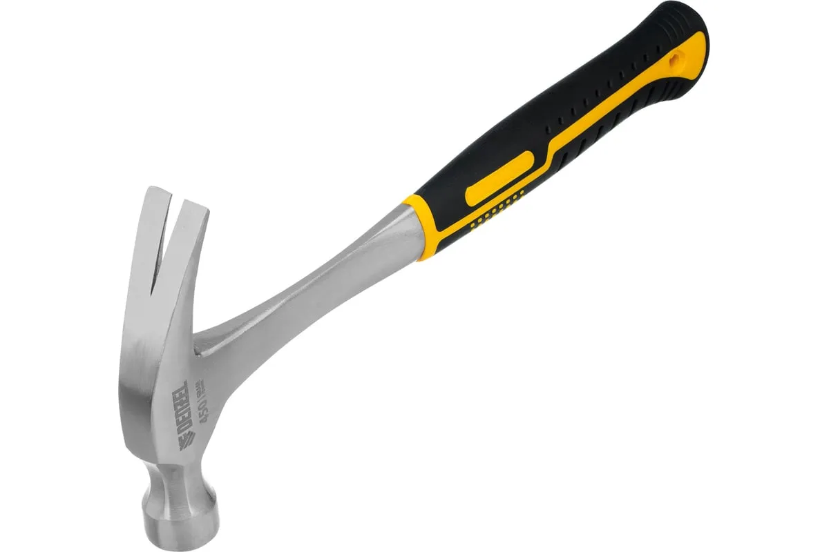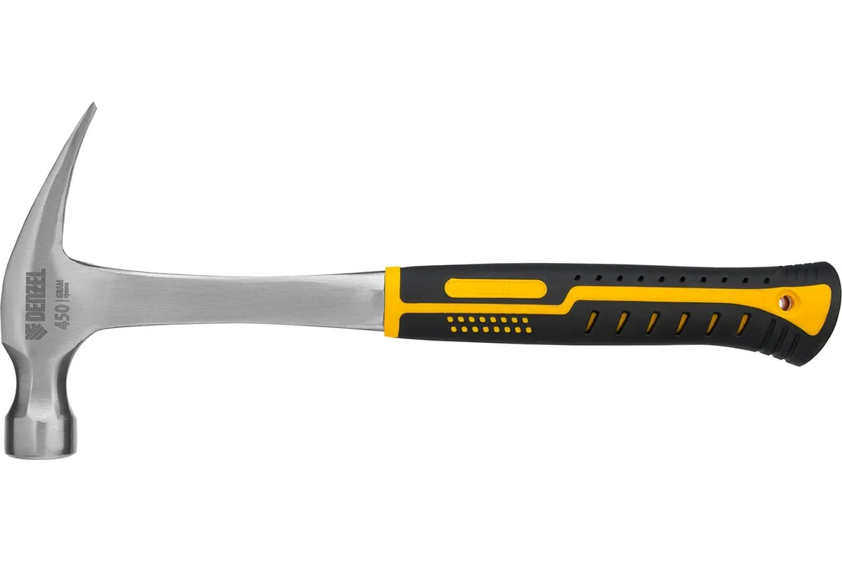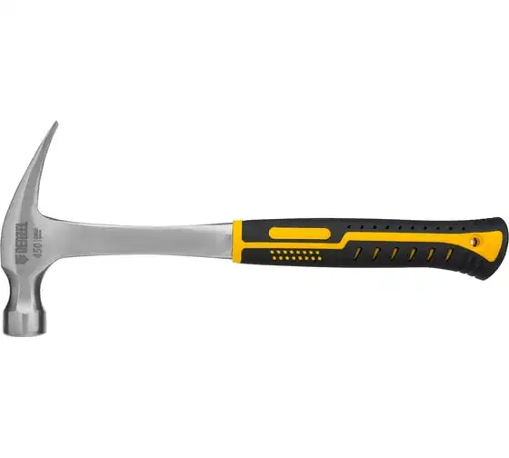 Цельнометаллический молоток-гвоздодер с головкой весом 450 г и двухкомпонентной рукояткой предназначен для забивания и извлечения гвоздей.