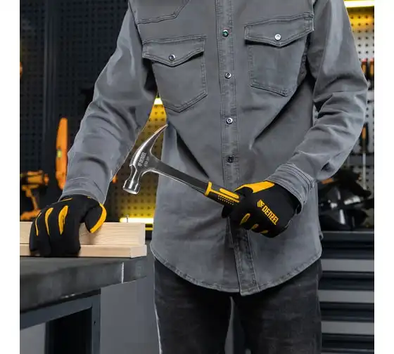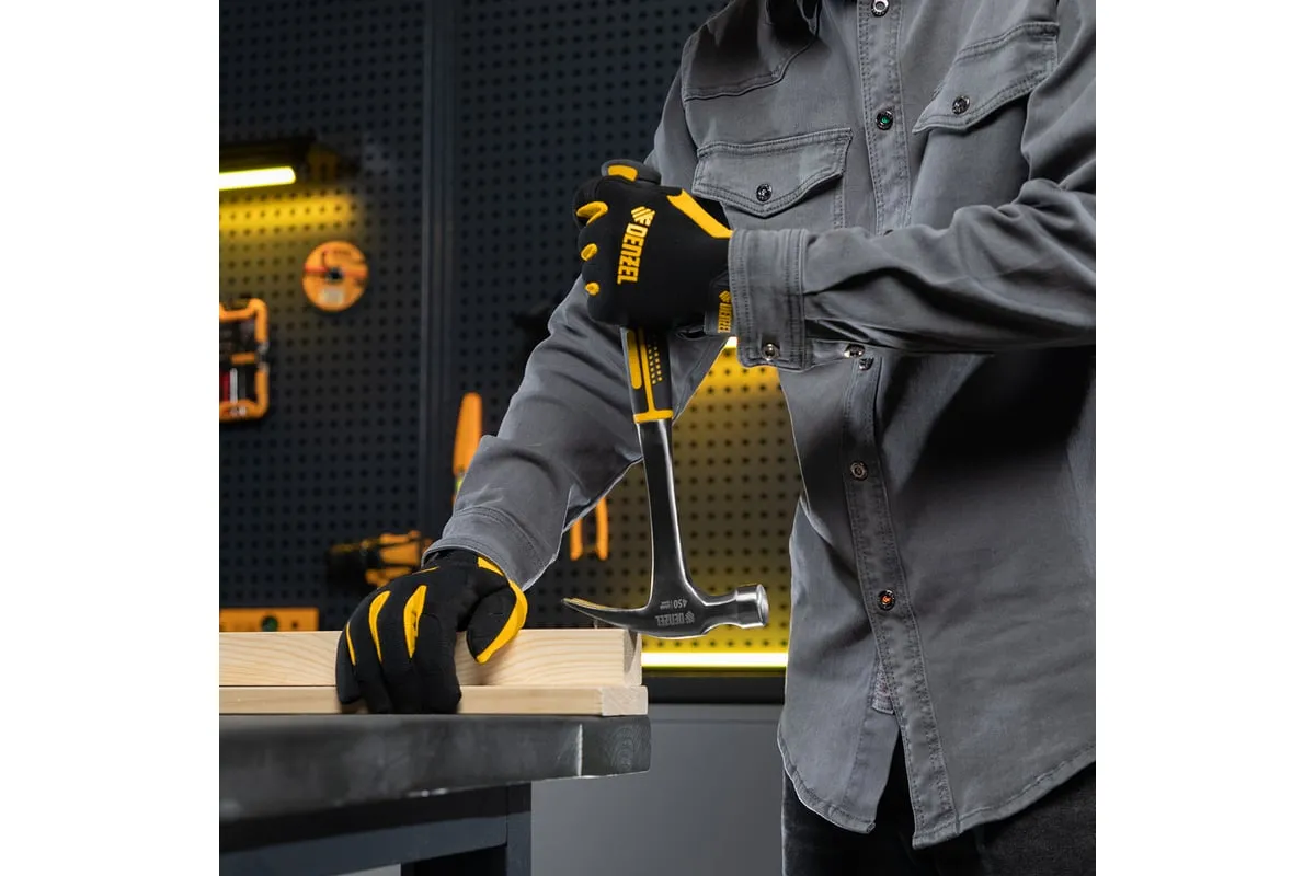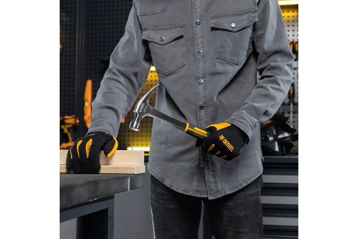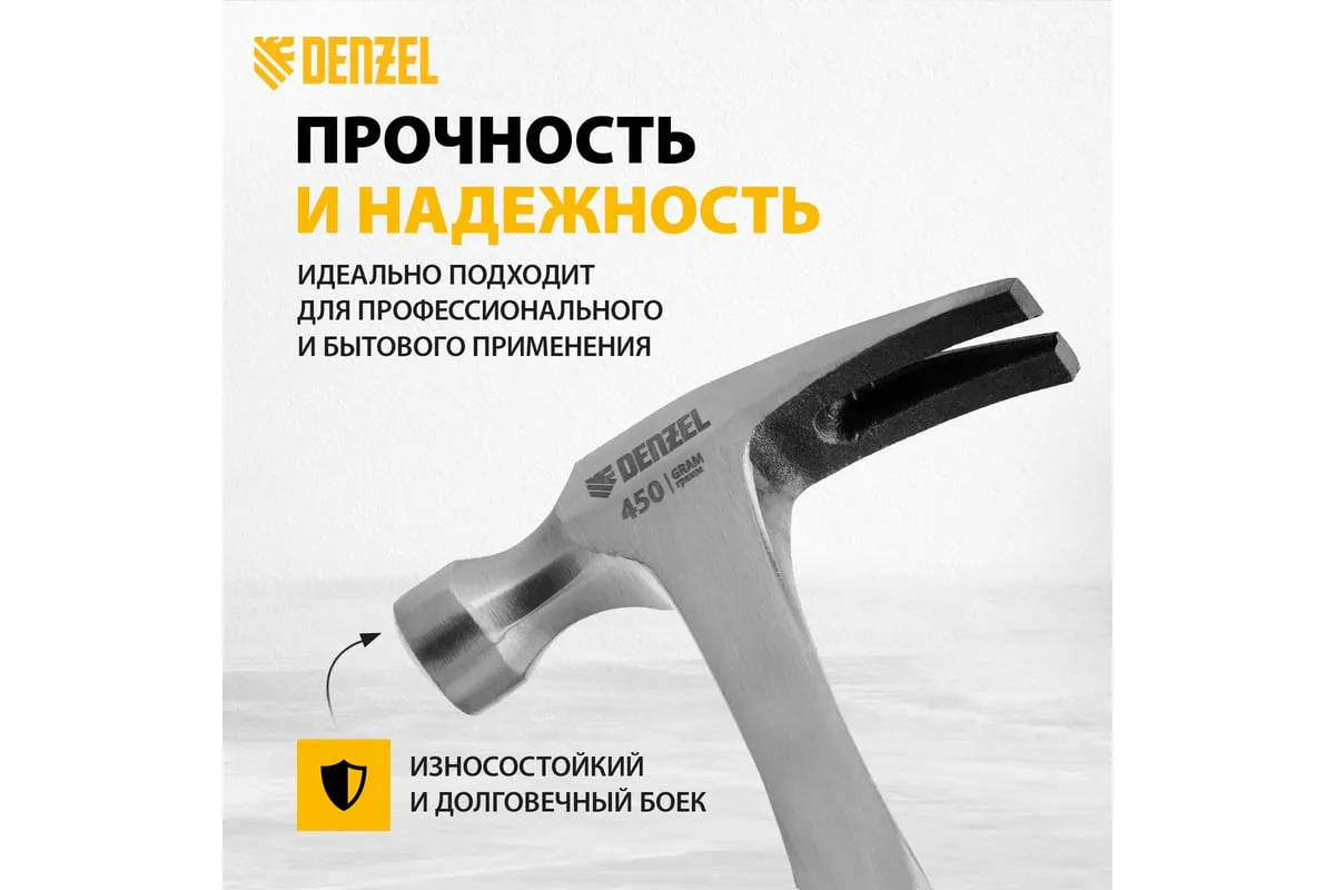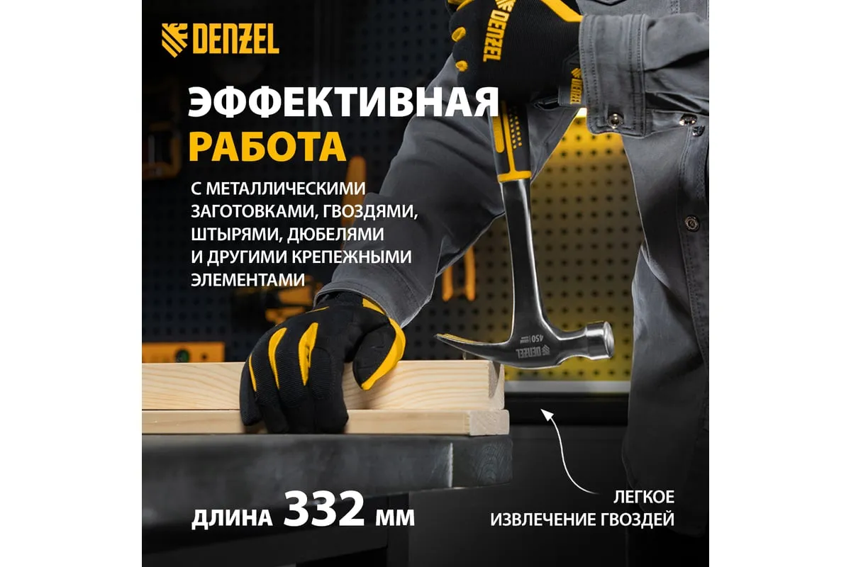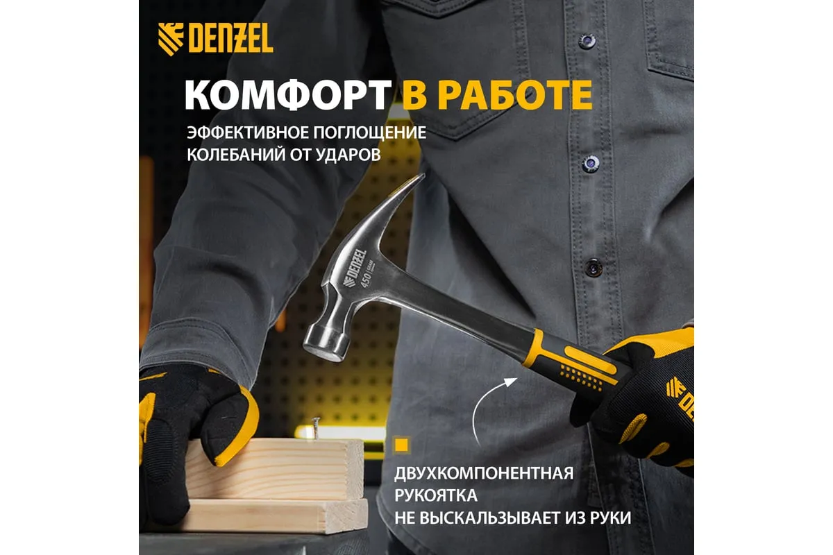 Цельнометаллический молоток-гвоздодер с головкой весом 450 г и двухкомпонентной рукояткой предназначен для забивания и извлечения гвоздей.