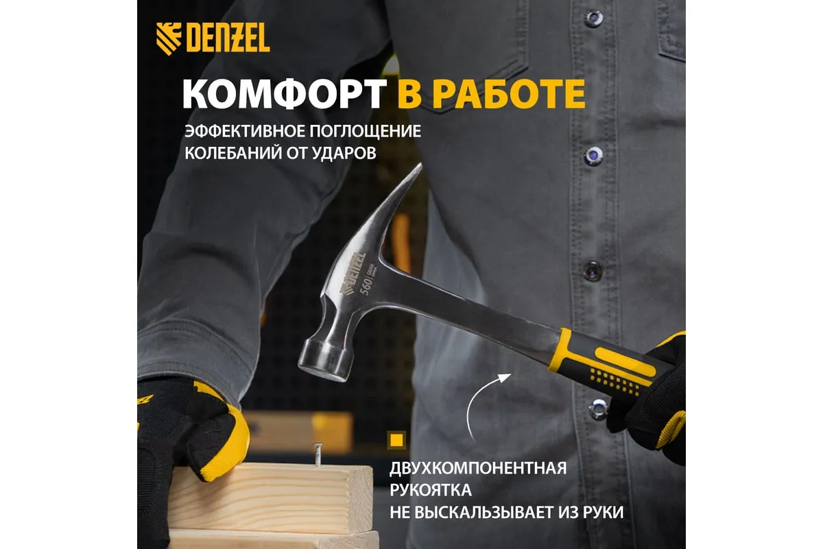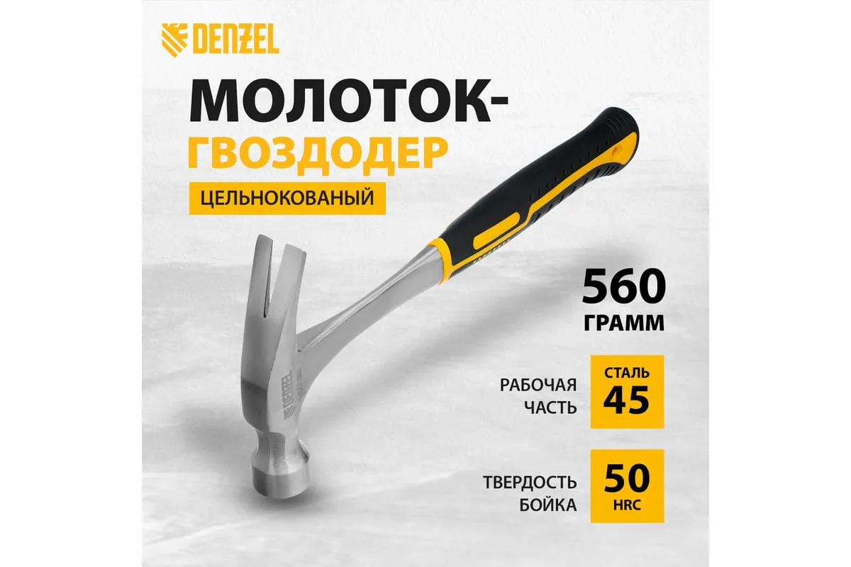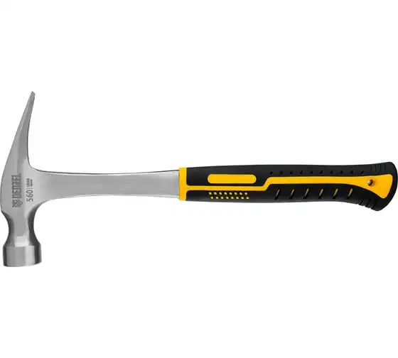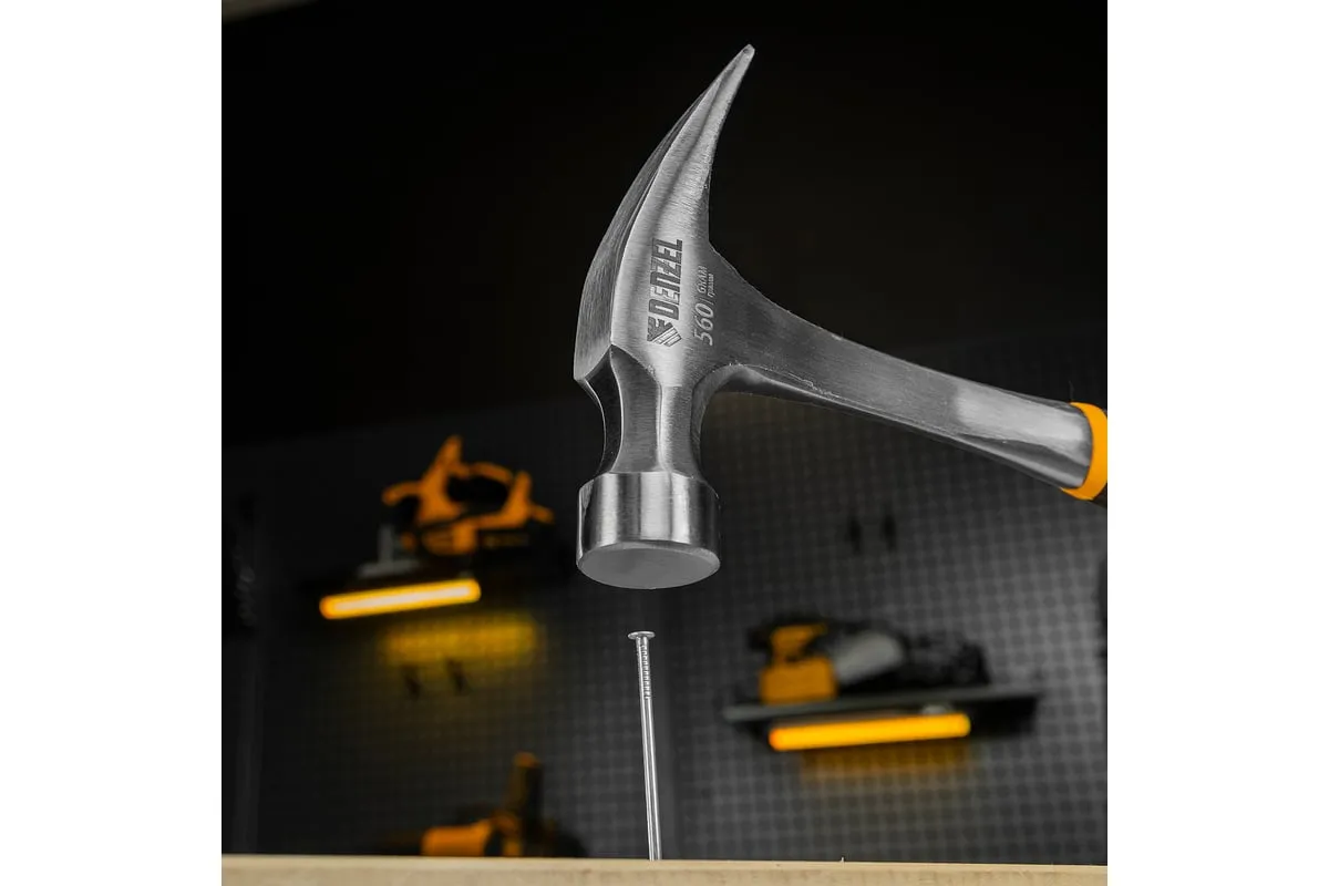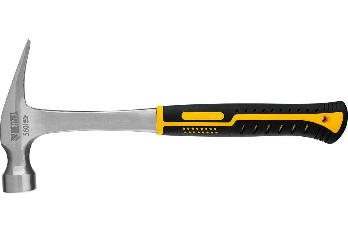 Цельнометаллический молоток-гвоздодер с головкой весом 560 г и двухкомпонентной рукояткой предназначен для забивания и извлечения гвоздей.