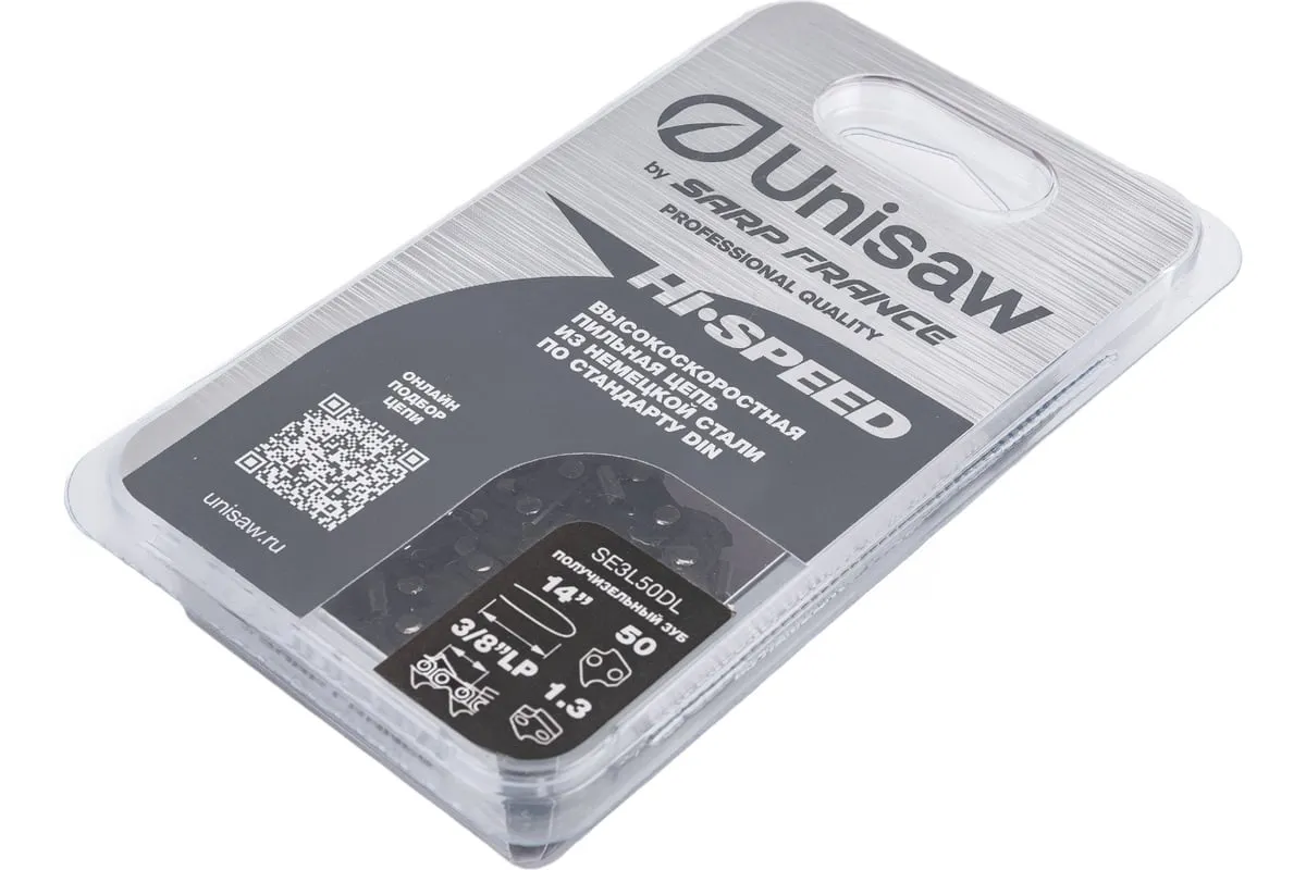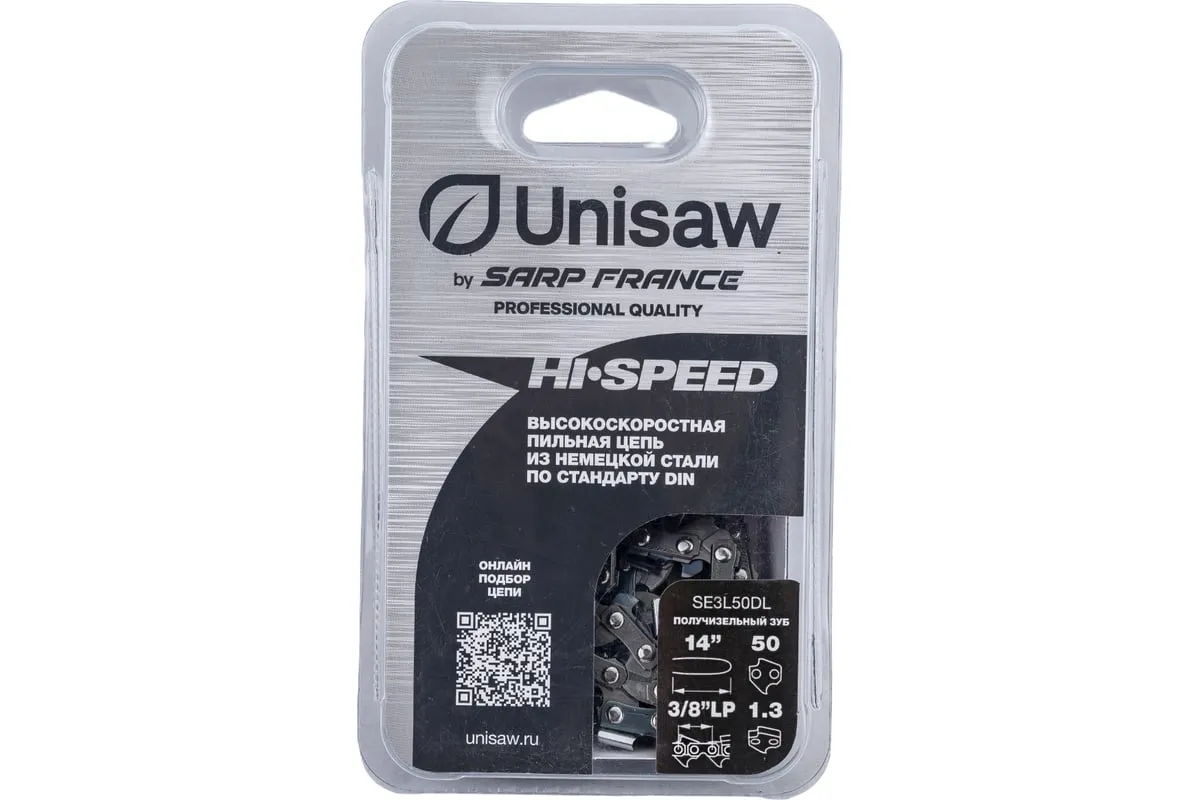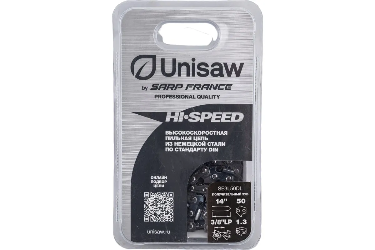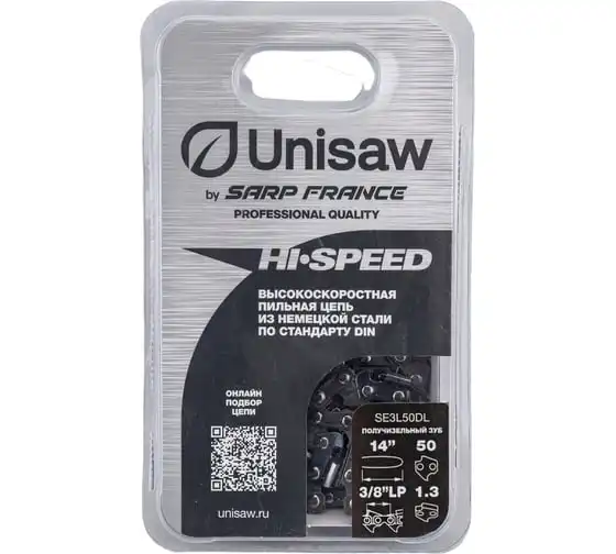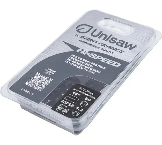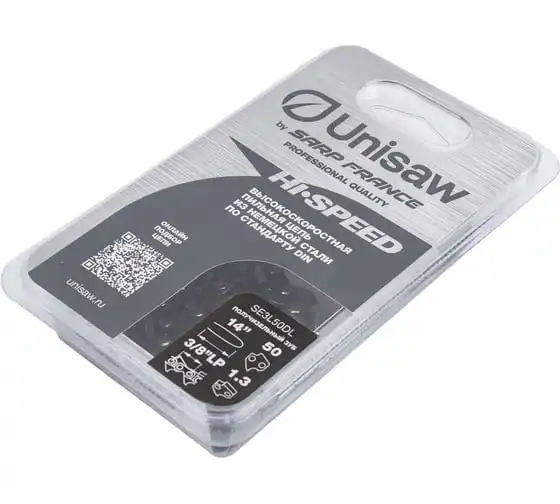 Высокоскоростная низкопрофильная цепь Unisaw SE3L50DL с шагом 3/8” и получизельным профилем режущего зуба, отлично подходит как для бытового, так и для профессионального использования.