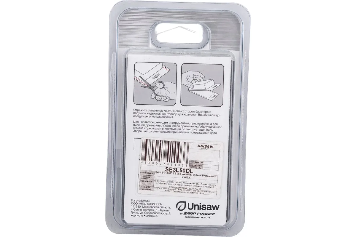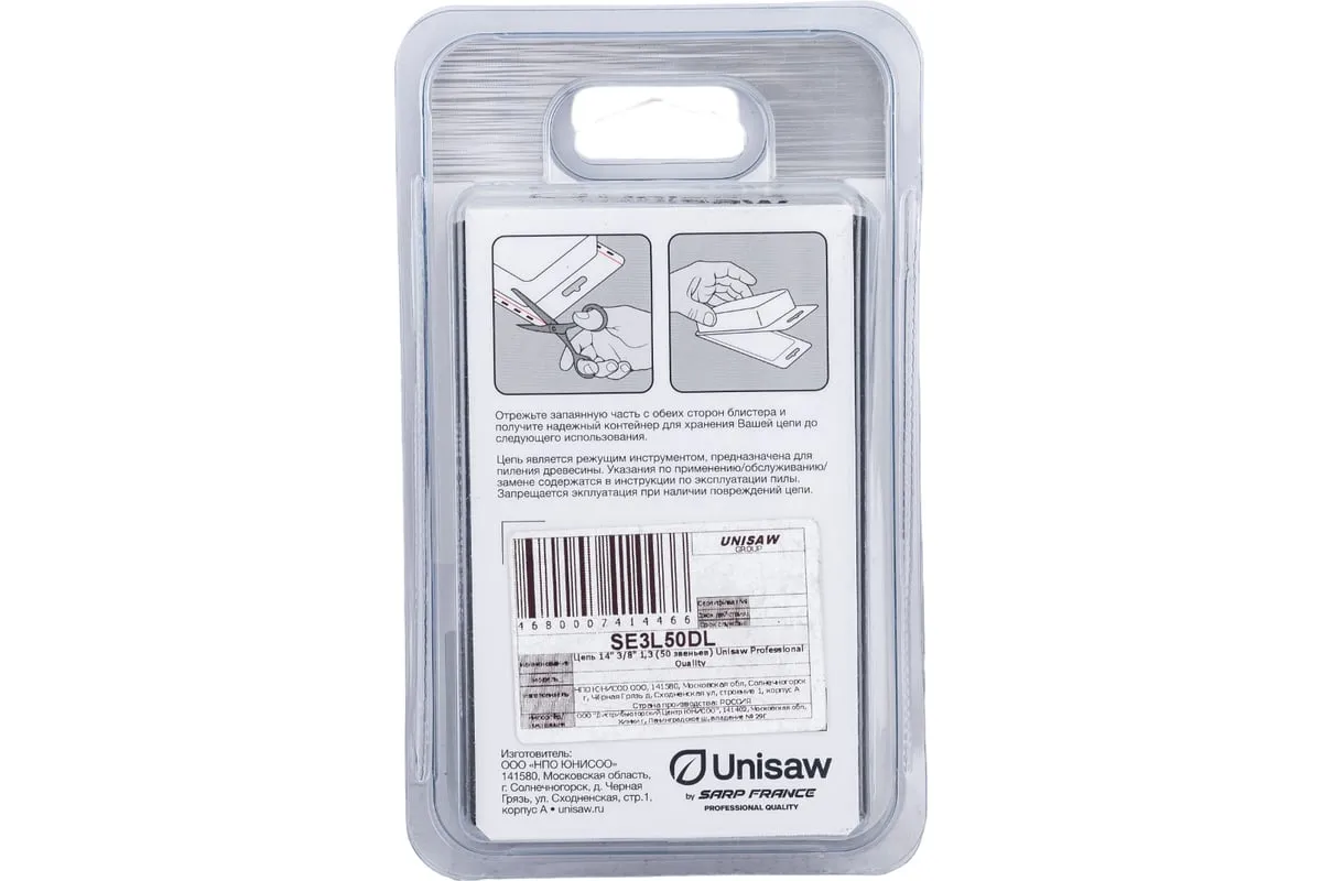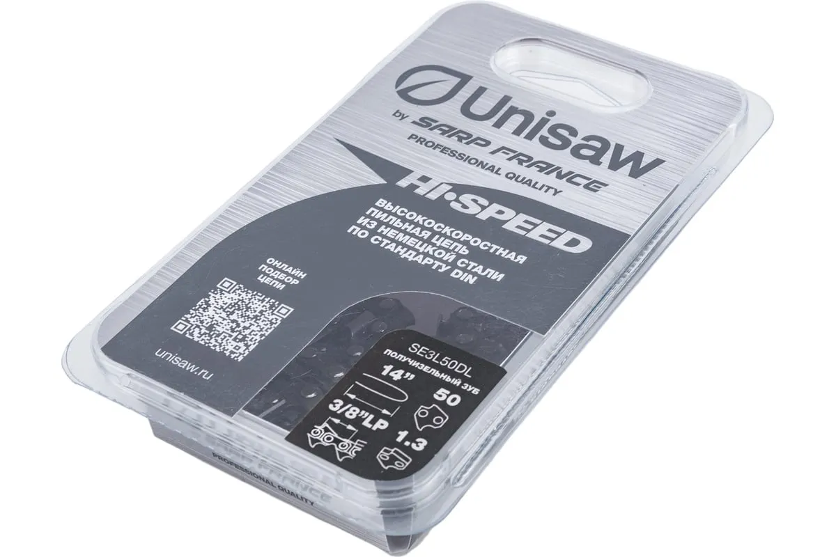Высокоскоростная низкопрофильная цепь Unisaw SE3L50DL с шагом 3/8” и получизельным профилем режущего зуба, отлично подходит как для бытового, так и для профессионального использования.